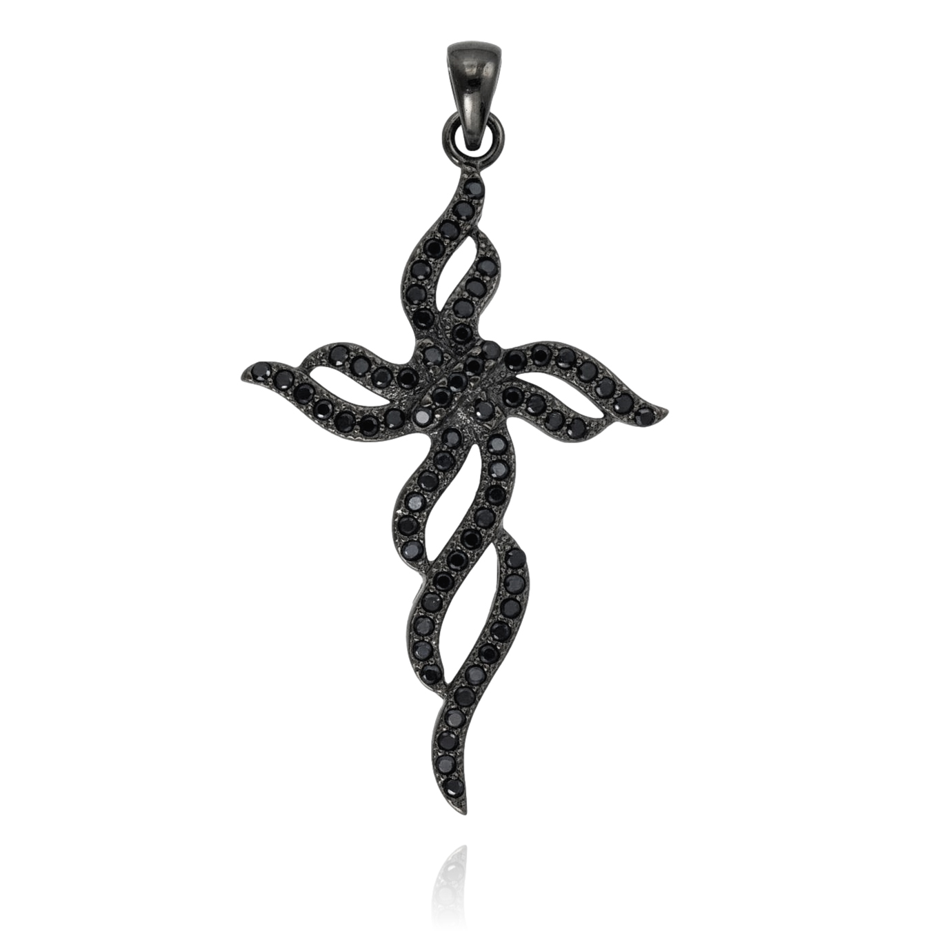 Piękny Srebrny Krzyż z Cyrkoniami Czarny Rod