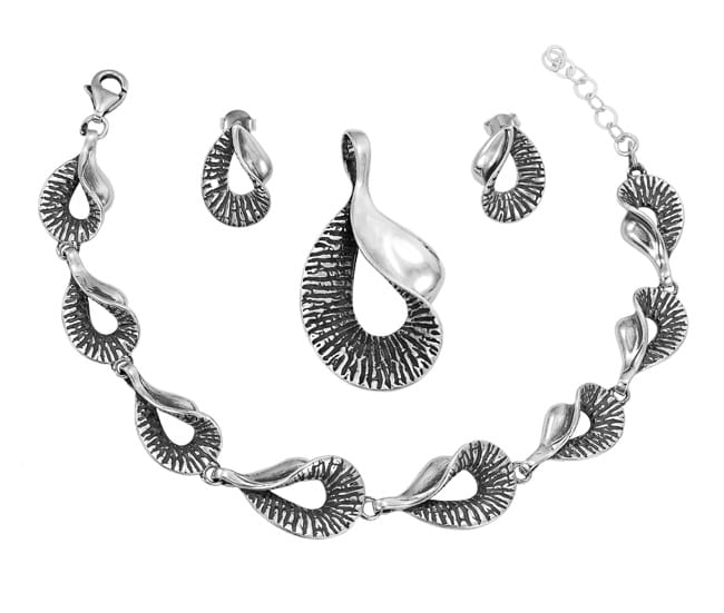 Piękny Srebrny Oksydowany,Solidny Komplet Fantazyjny !!!