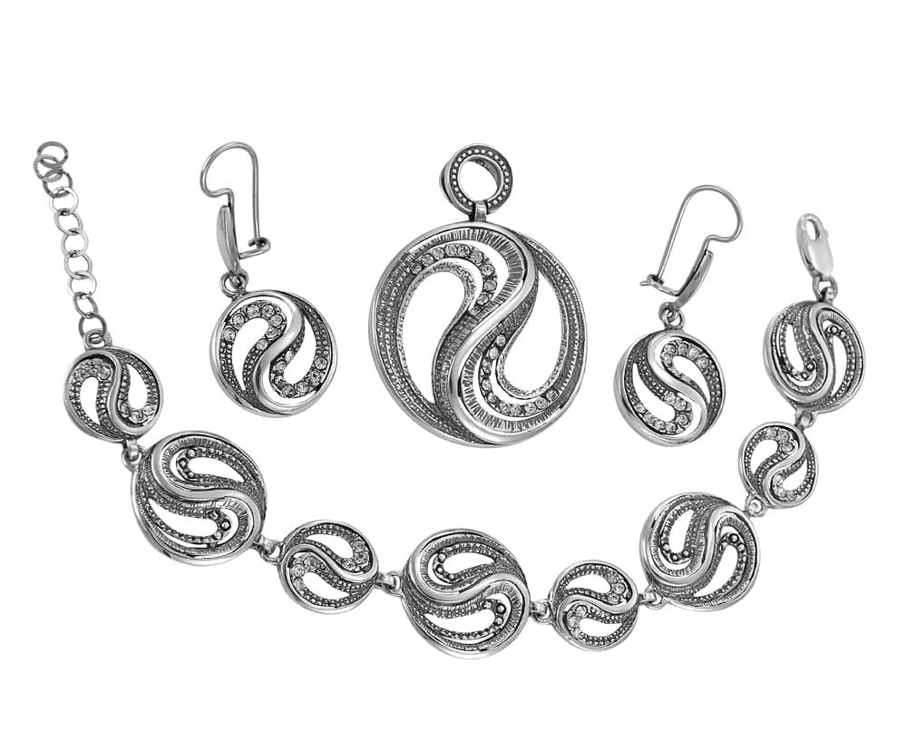 Piękny Srebrny Oksydowany Komplet z Cyrkoniami !!!