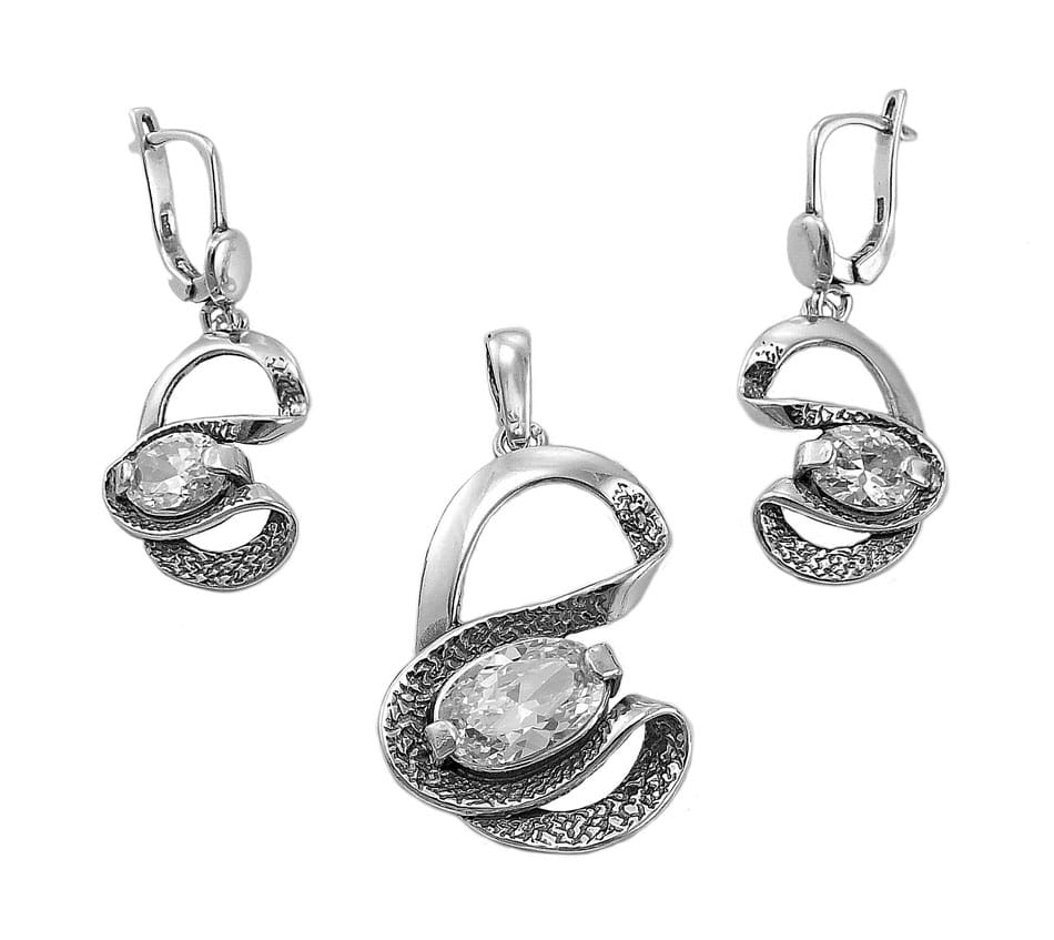 Piękny Srebrny Oksydowany Komplet z Cyrkoniami !