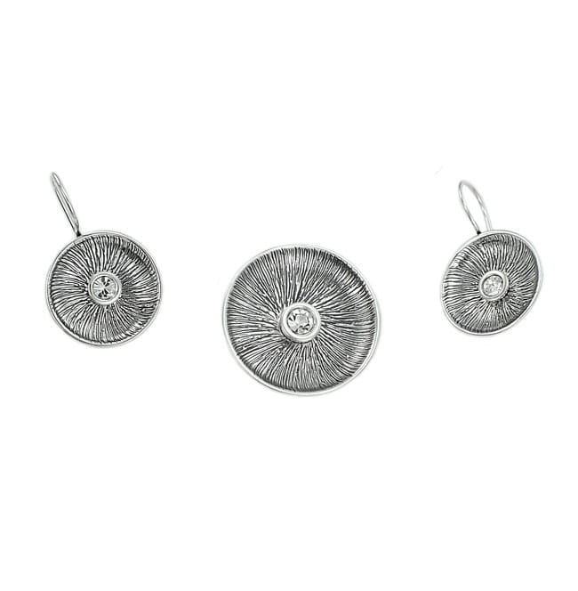 Piękny Srebrny Oksydowany Komplet z Cyrkoniami ! Jakość !