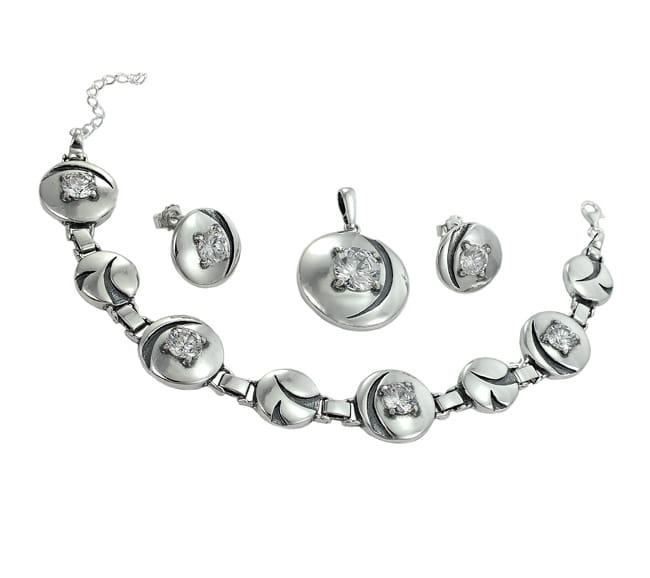 Piękny Srebrny Oksydowany Komplet z Cyrkoniami !!! Polecam !!!