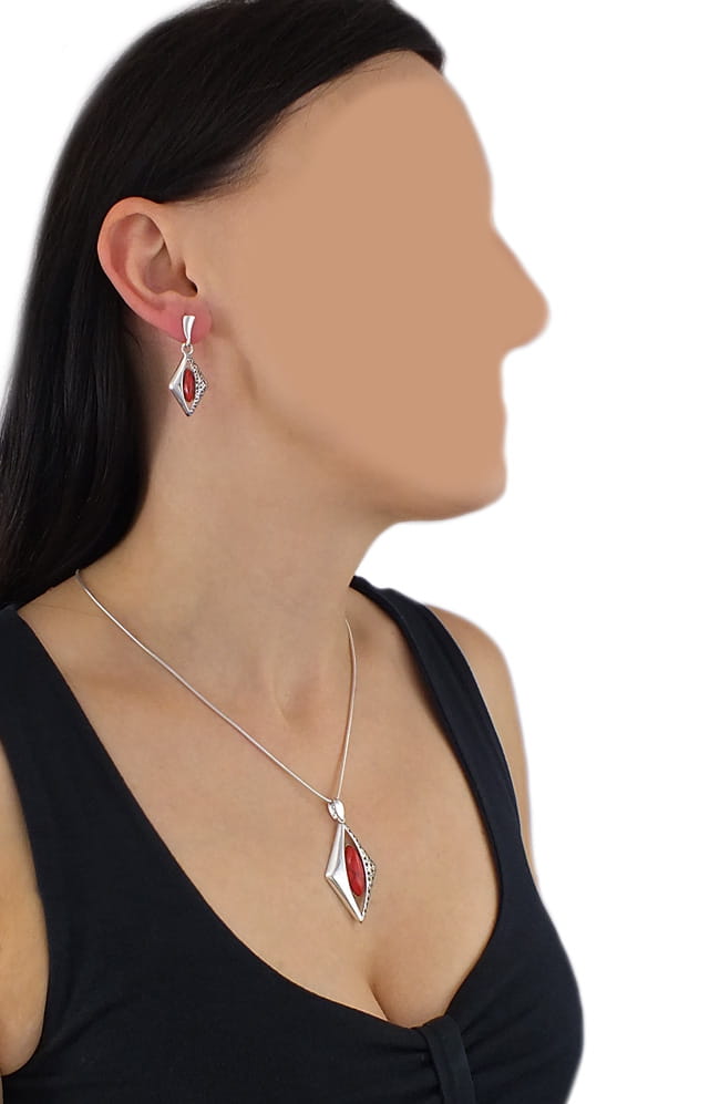 Piękny Srebrny Oksydowany Komplet z Jaspisem Koralowym !!!