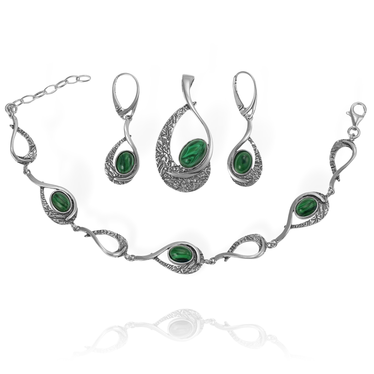 Srebrny Oksydowany Komplet z Malachitem !