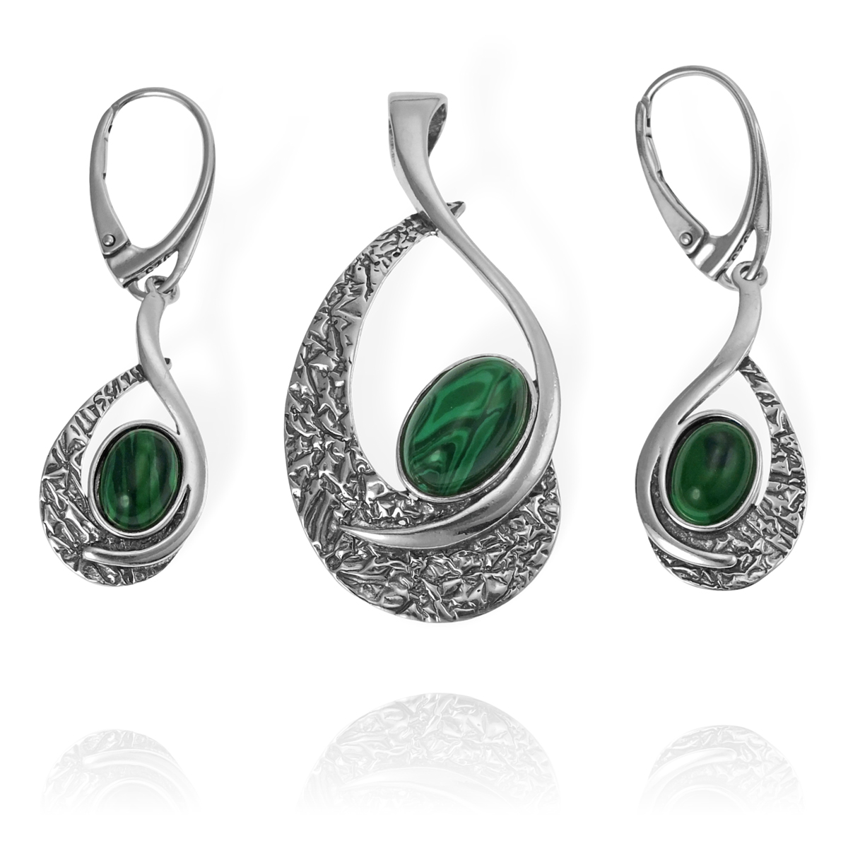 Srebrny Oksydowany Komplet z Malachitem !