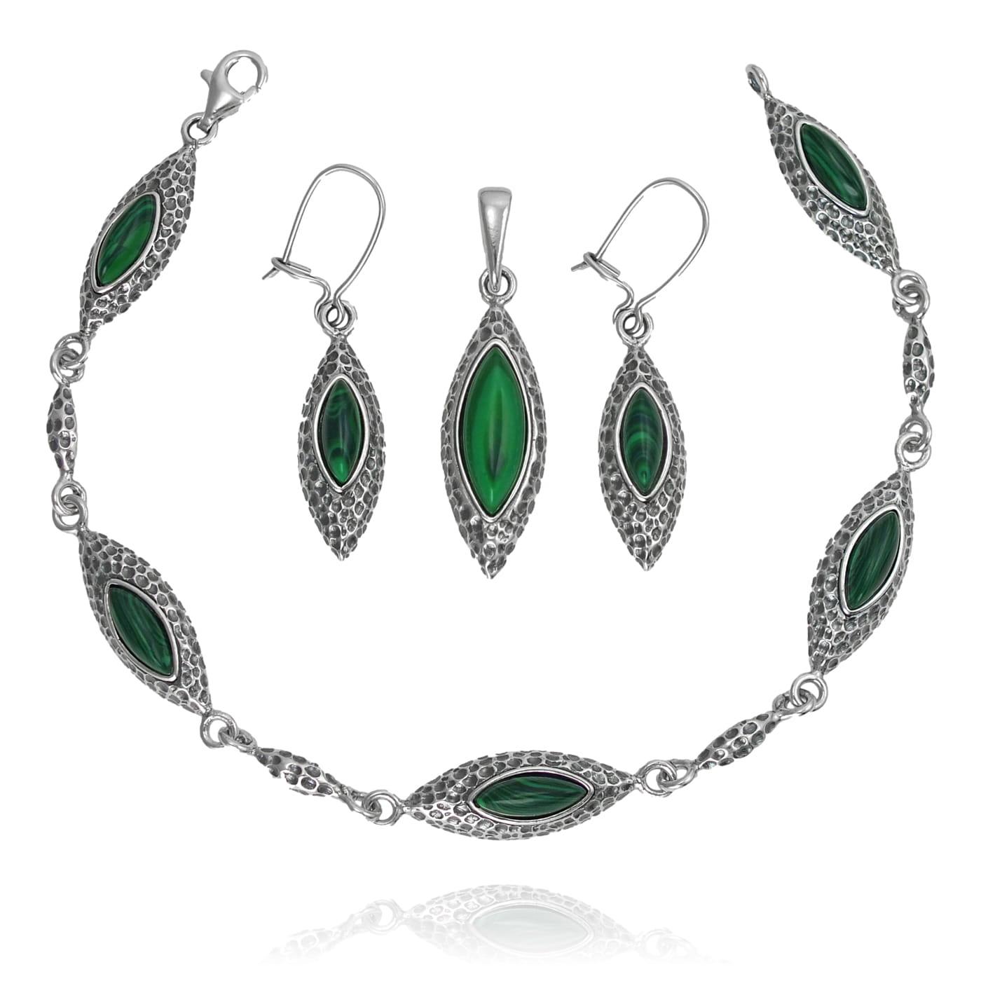 Piękny Srebrny Oksydowany Komplet z Malachitem !