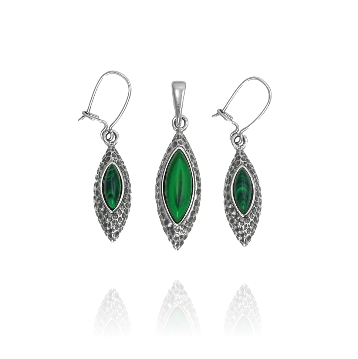 Piękny Srebrny Oksydowany Komplet z Malachitem !