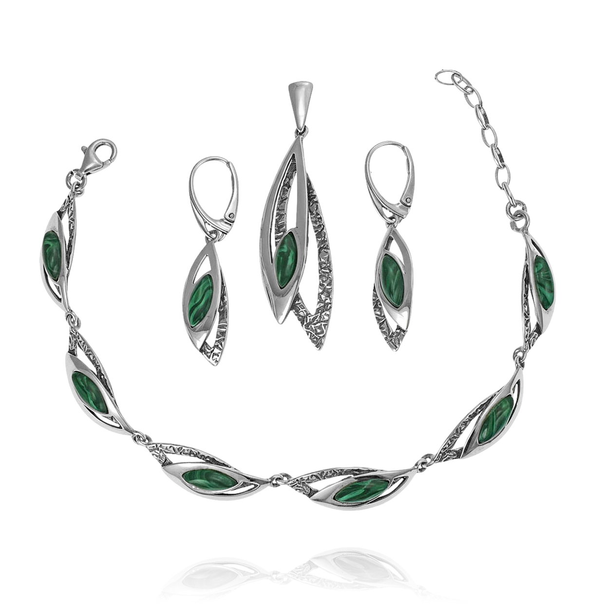 Piękny Srebrny Oksydowany Komplet z Malachitem !