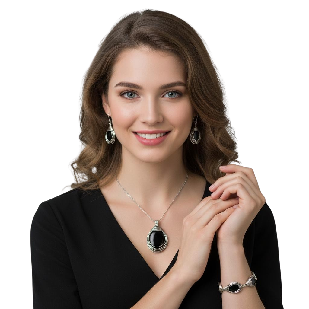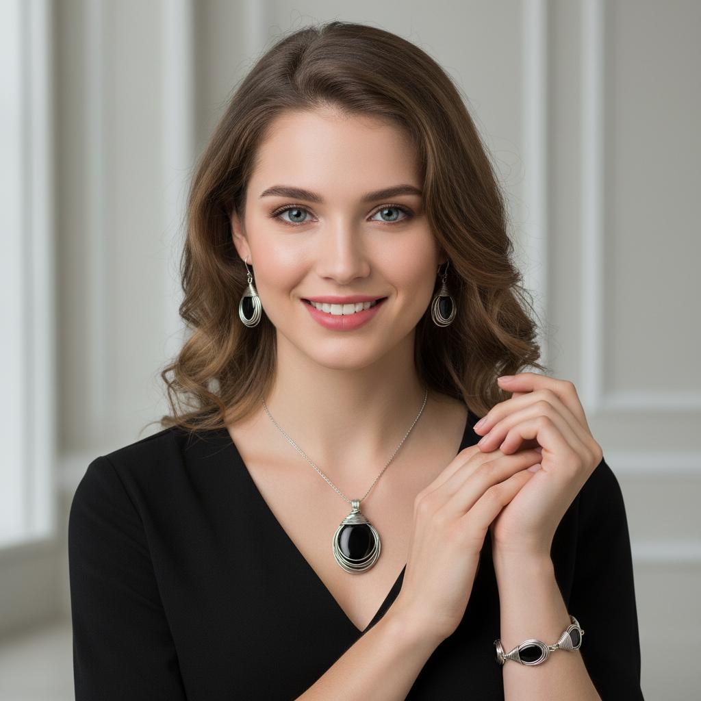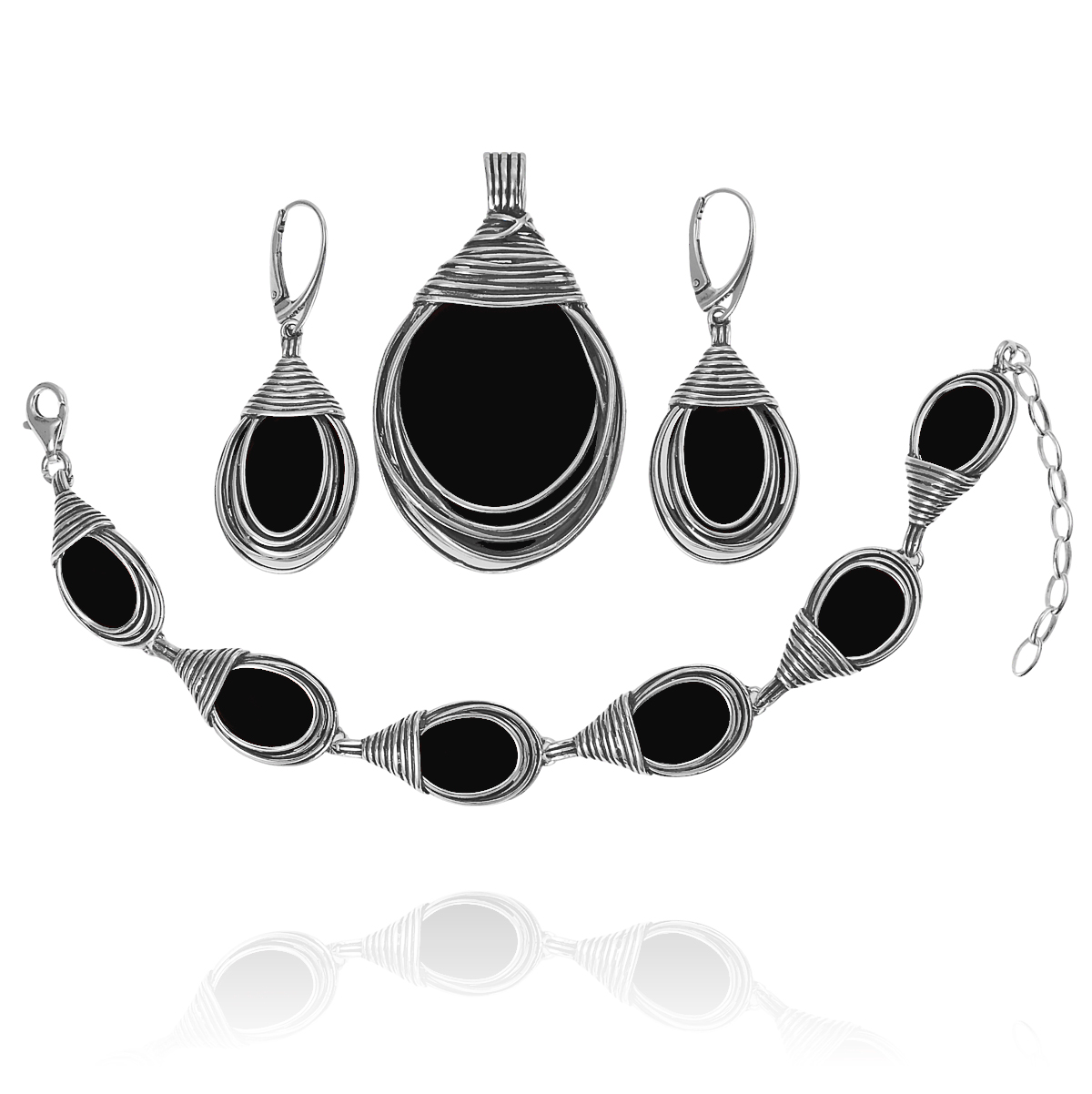 Piękny Srebrny Oksydowany Komplet z Onyksem !