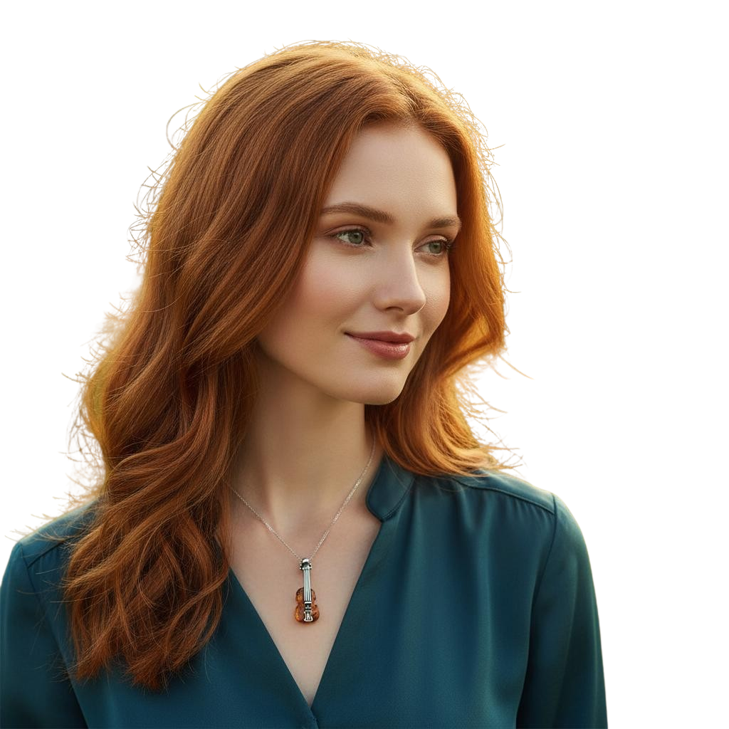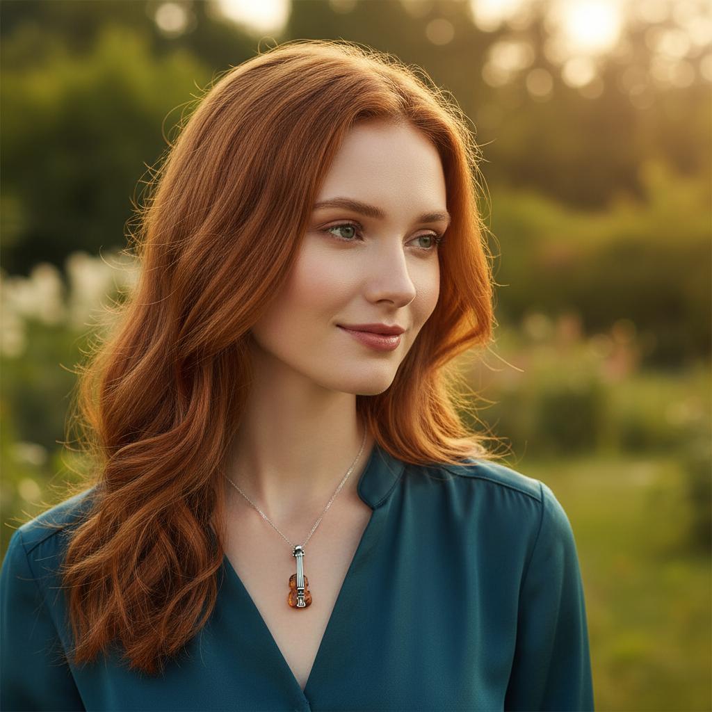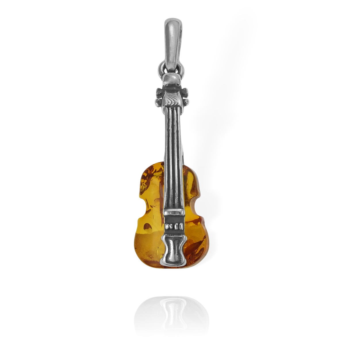 Piękny Srebrny Oksydowany Wisiorek - Gitara z Bursztynem