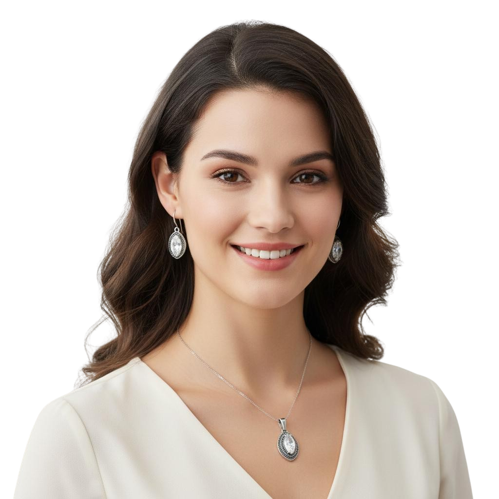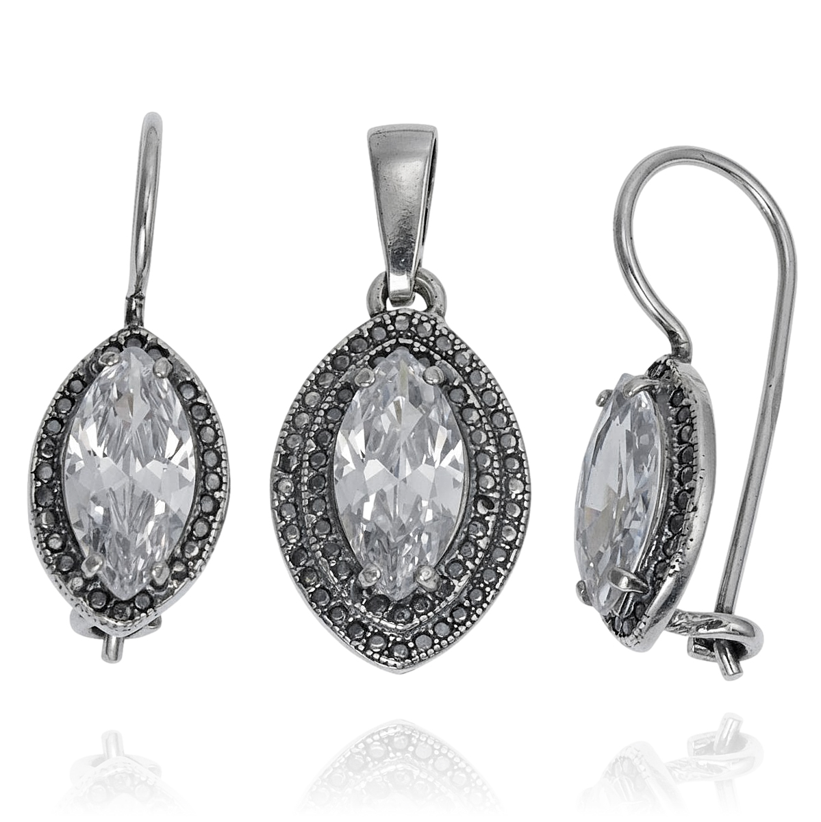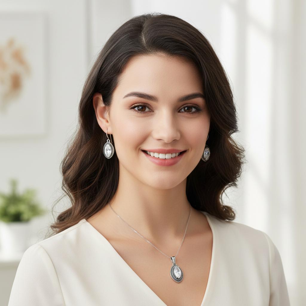 Piękny Srebrny Rodowany Komplet z Cyrkoniami !