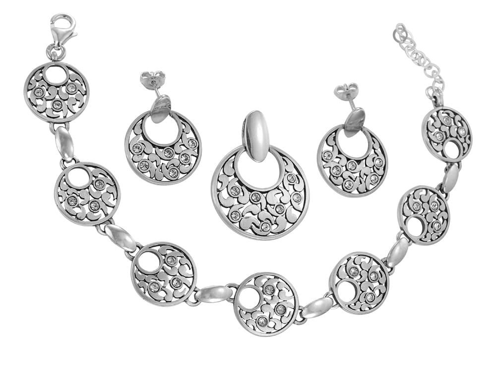 Piękny Srebrny Satynowany Komplet z Cyrkoniami !!!