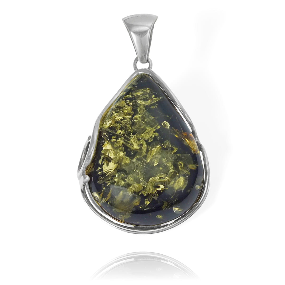 Piękny Srebrny Wisior, Wisiorek z Bursztynem