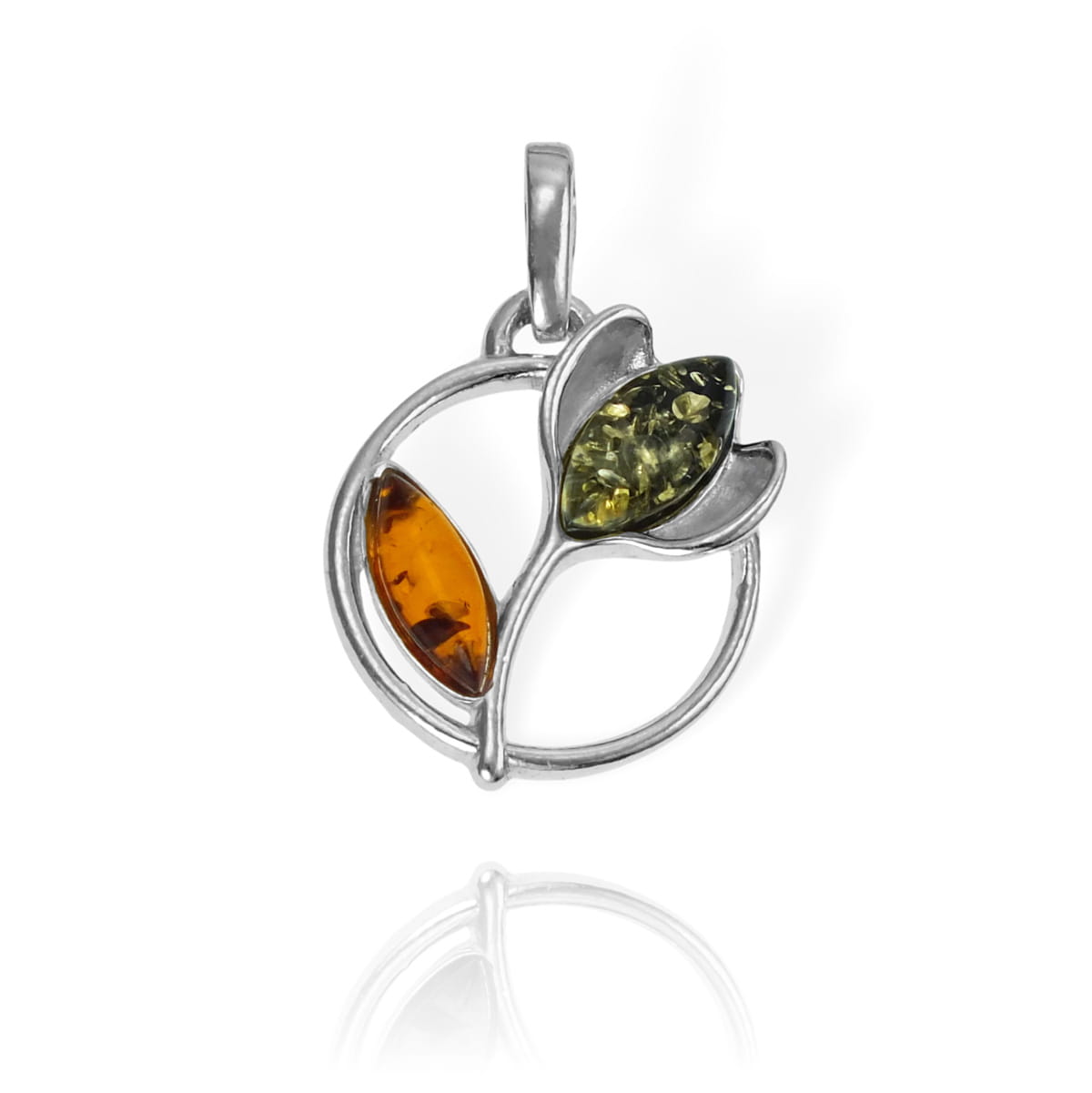 Piękny Srebrny Wisiorek Kwiat Kwiatuszek z Bursztynami