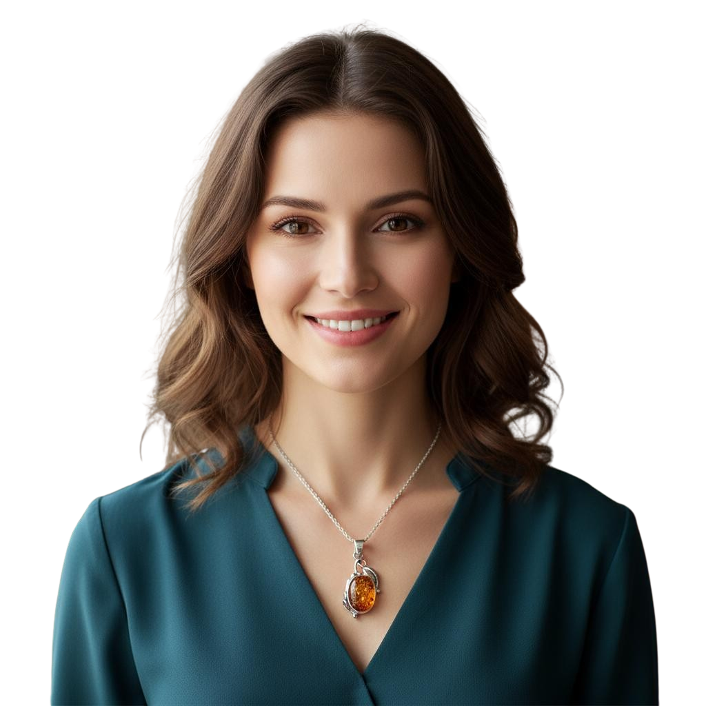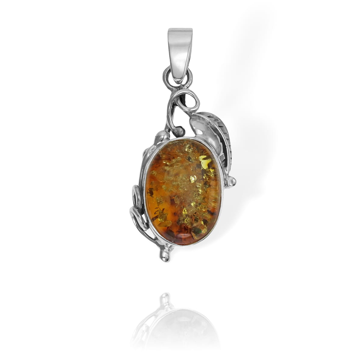 Piękny Srebrny Wisiorek z Bursztynem - pr. 925