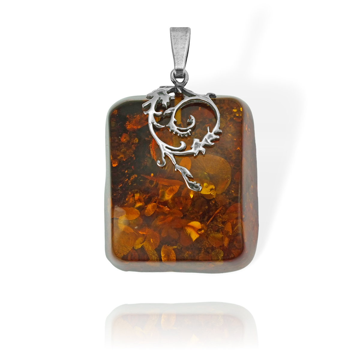 Piękny Srebrny Wisiorek z Bursztynem