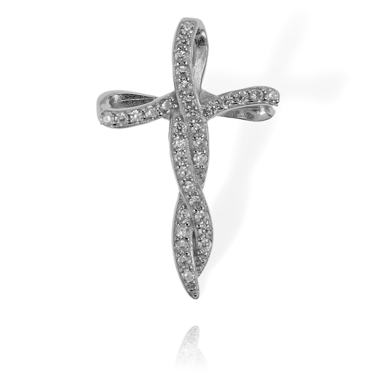 Srebrny Zawijany Krzyż z Cyrkoniami