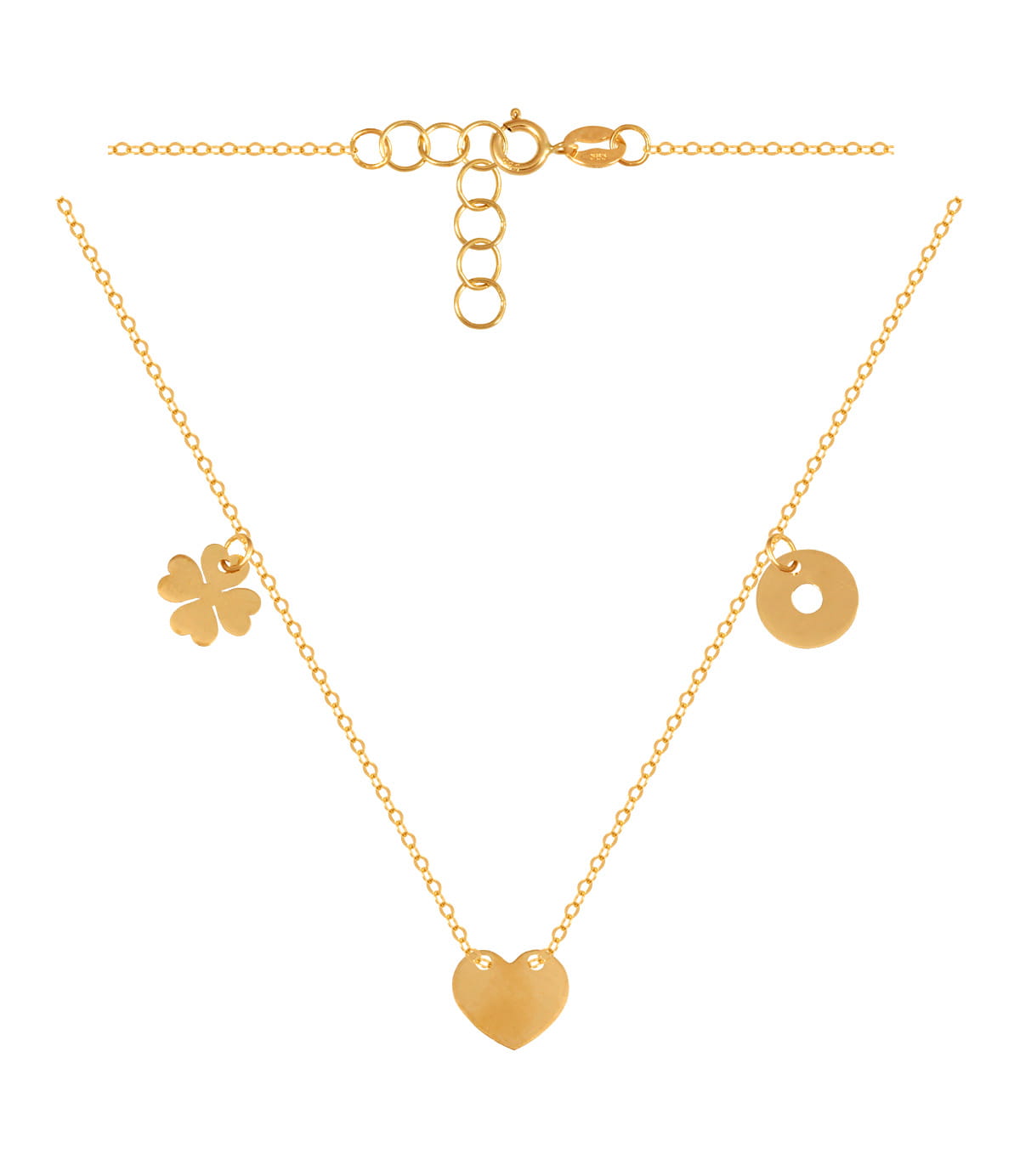 Zdobiony Zawieszkami w Kształcie Serca,Koniczynki i Kółeczka + Przedłużający Łańcuszek