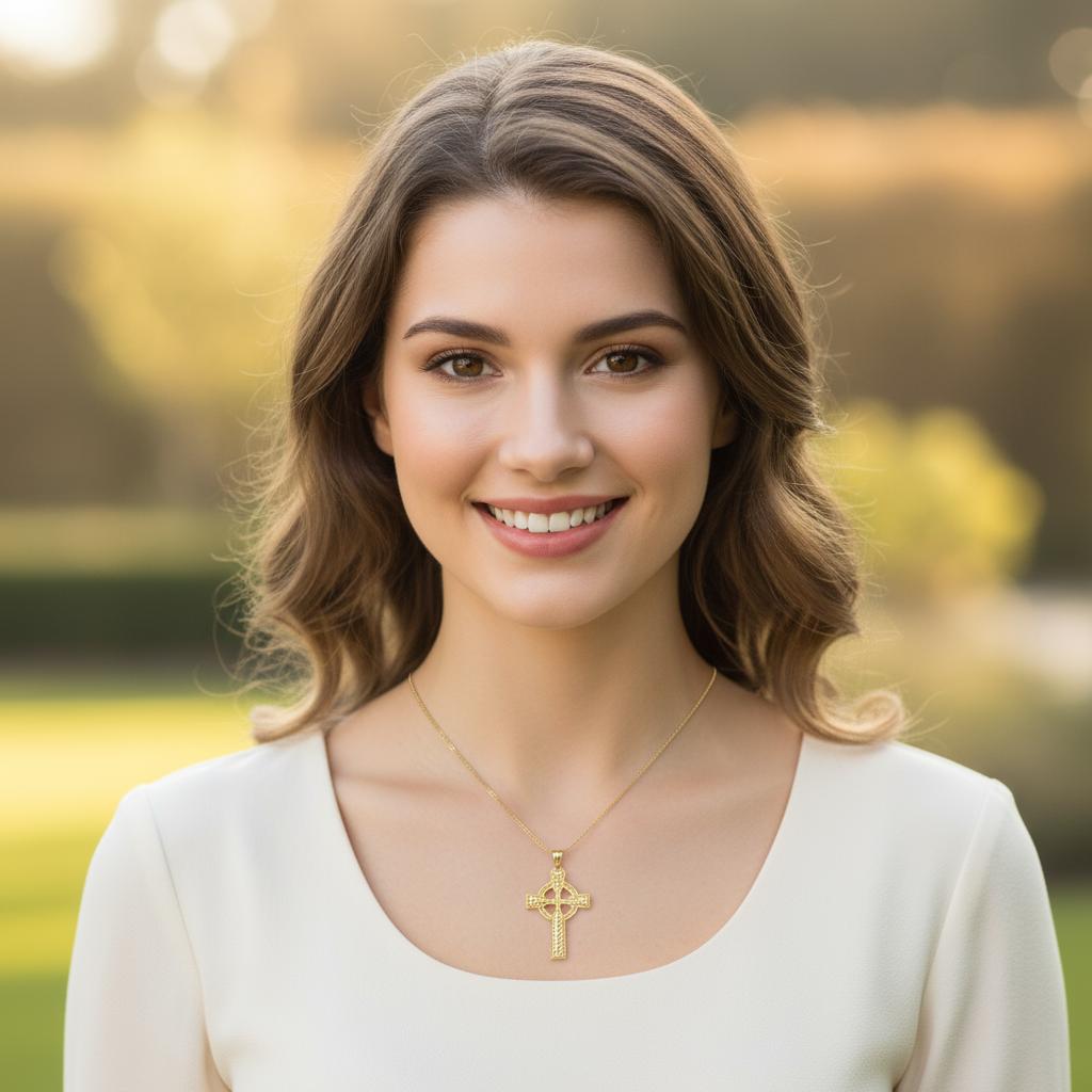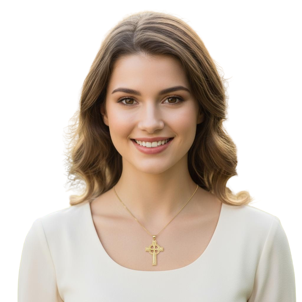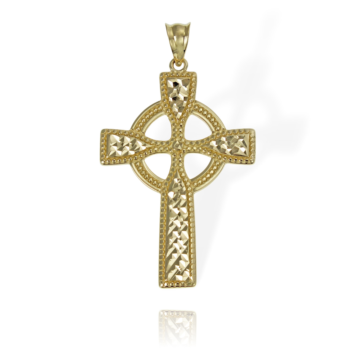 Piękny Złoty Diamentowany Krzyż Celtycki - Próba 585