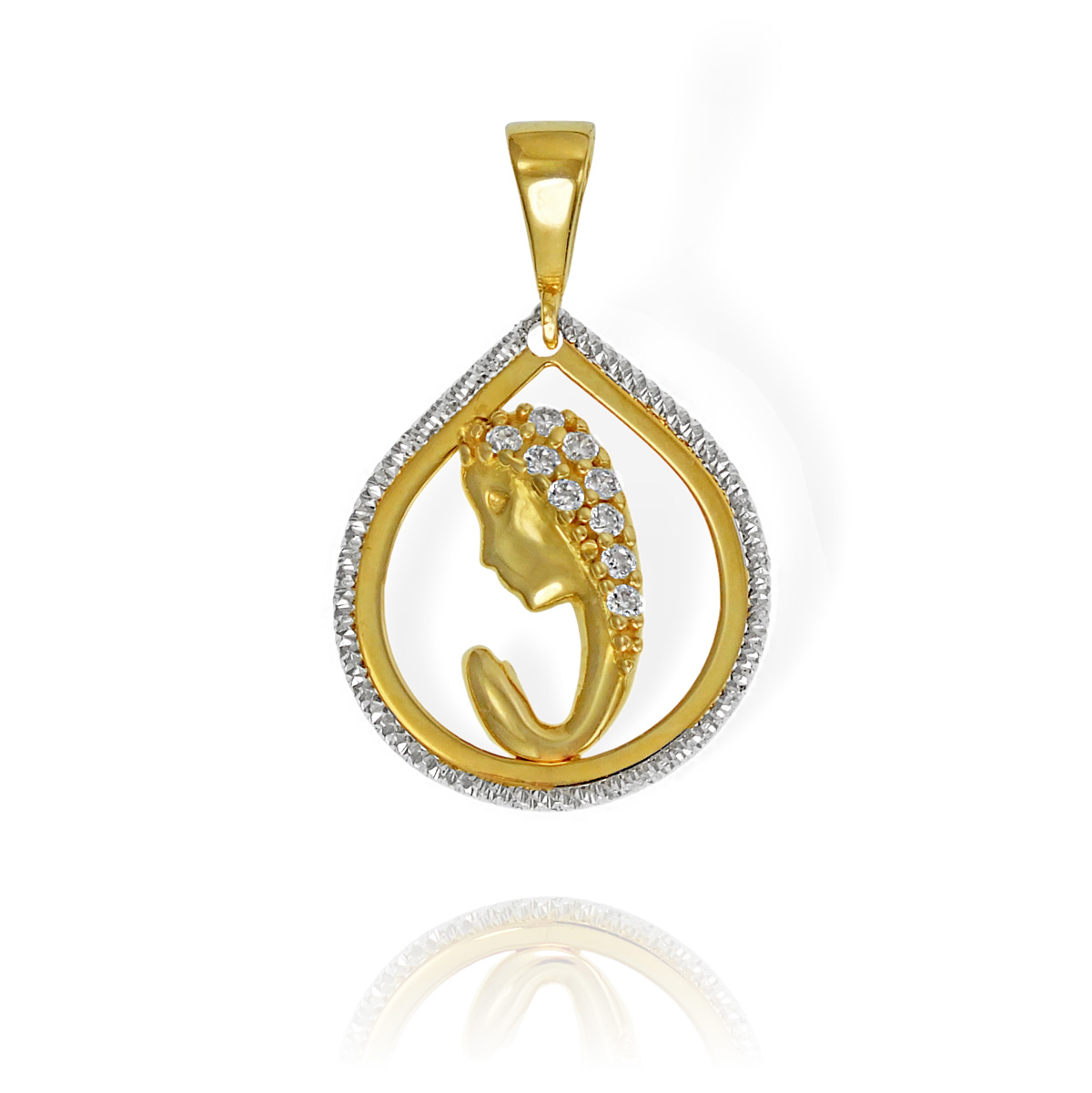 Piękny Złoty Diamentowany Medalik Matka Boska z Cyrkoniami