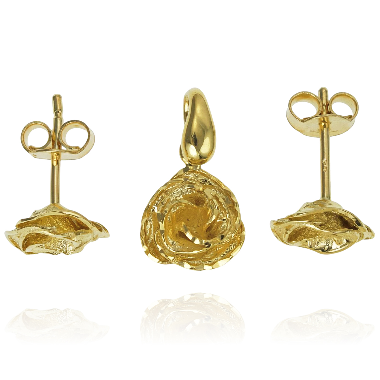 Piękny Złoty Komplet Kwiatki Róże - pr. 585