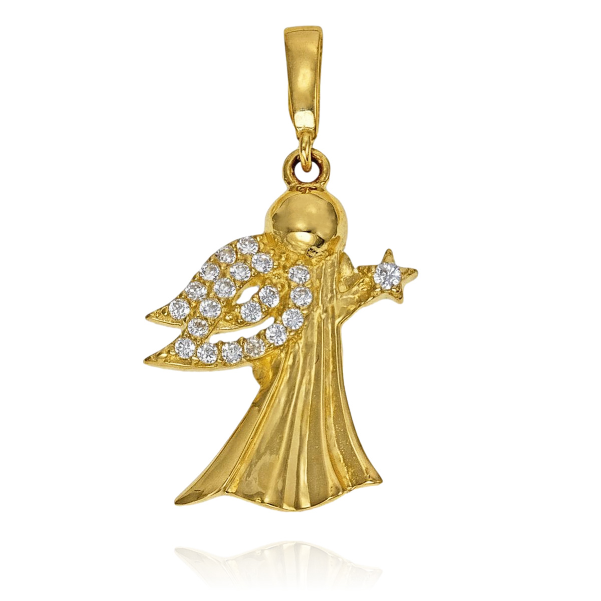 Piękny Złoty Wisiorek Anioł, Aniołek z Cyrkoniami - Pr. 585