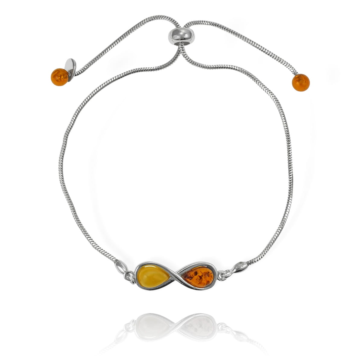 Srebrna Bransoletka Nieskończoność z Bursztynami !