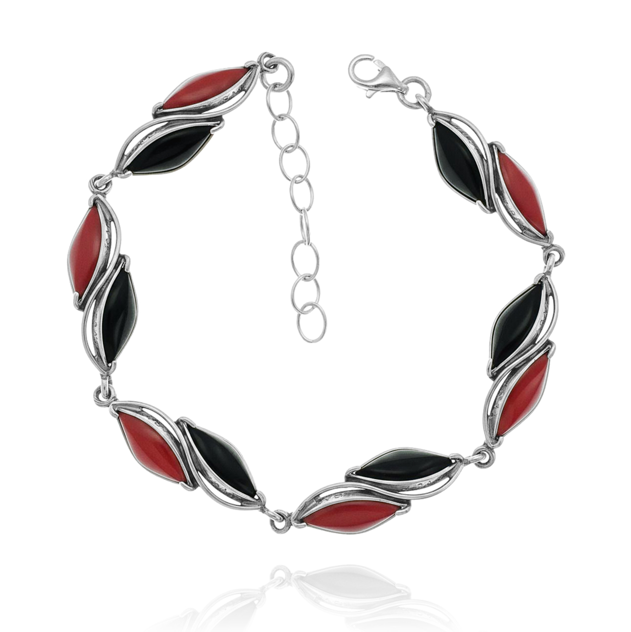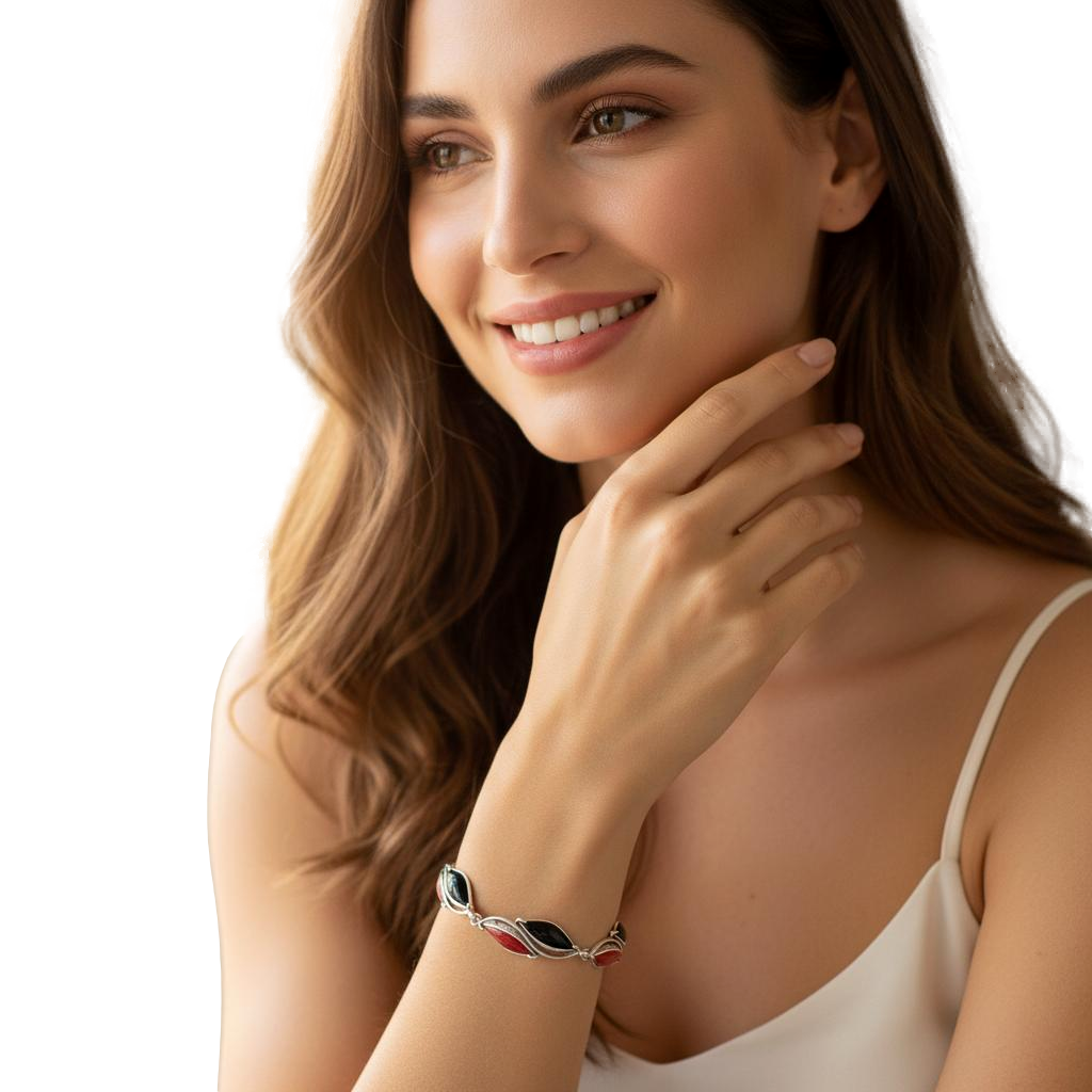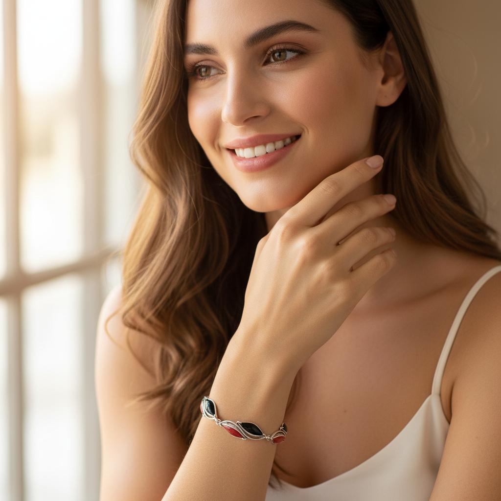 Srebrna Bransoletka z Czarnym i Czerwonym Kwarcem