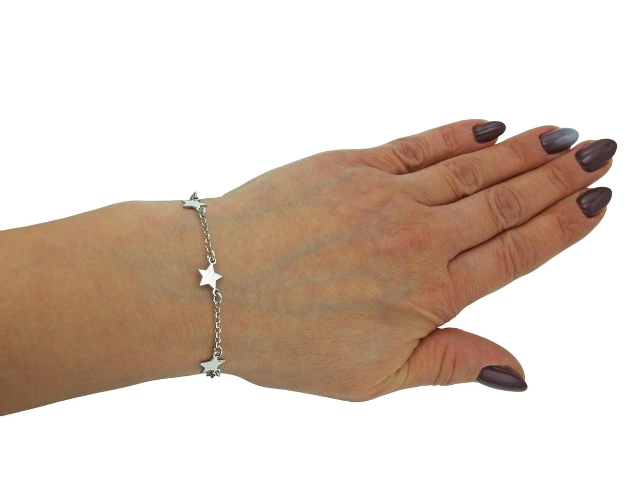 Srebrna Delikatna Rodowana Bransoletka z Gwiazdkami !