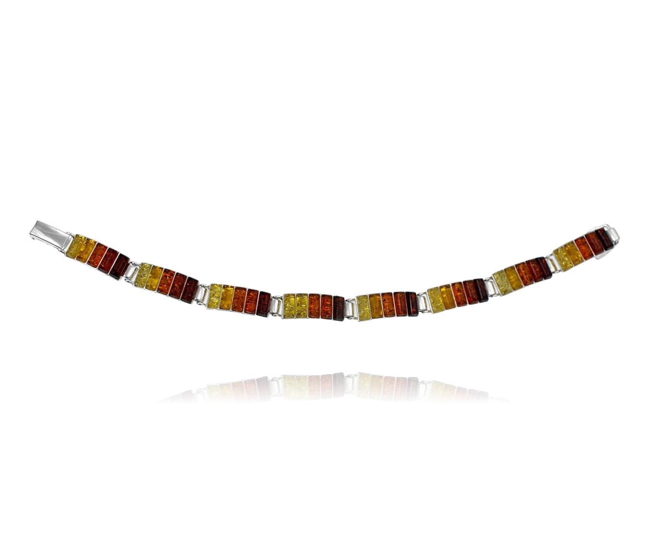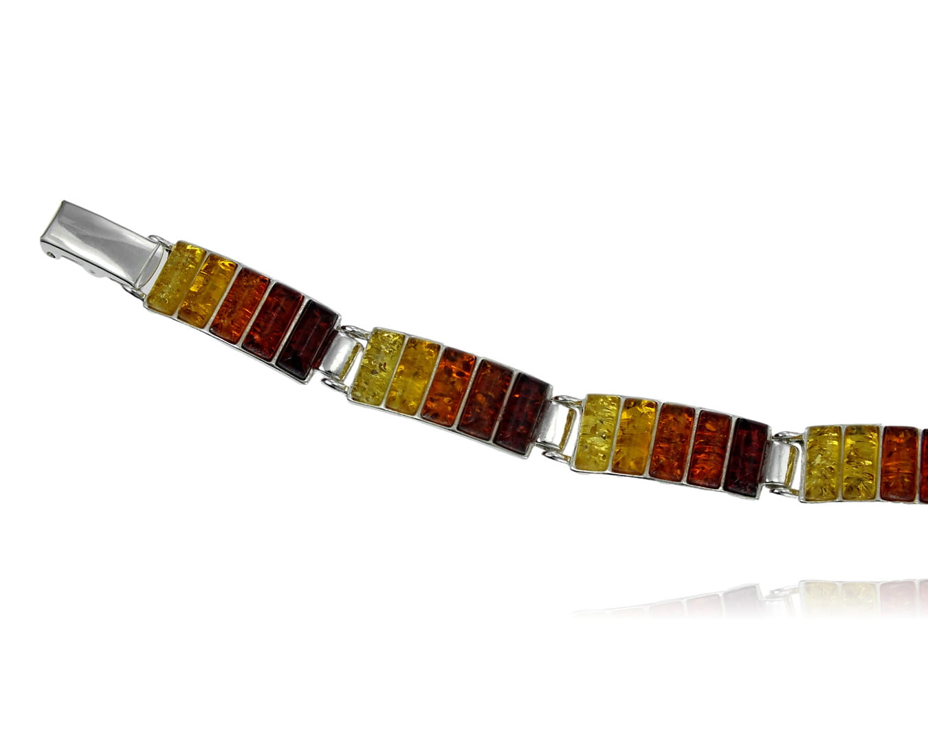 Srebrna Efektowna Bransoletka z Różnokolorowymi Bursztynami