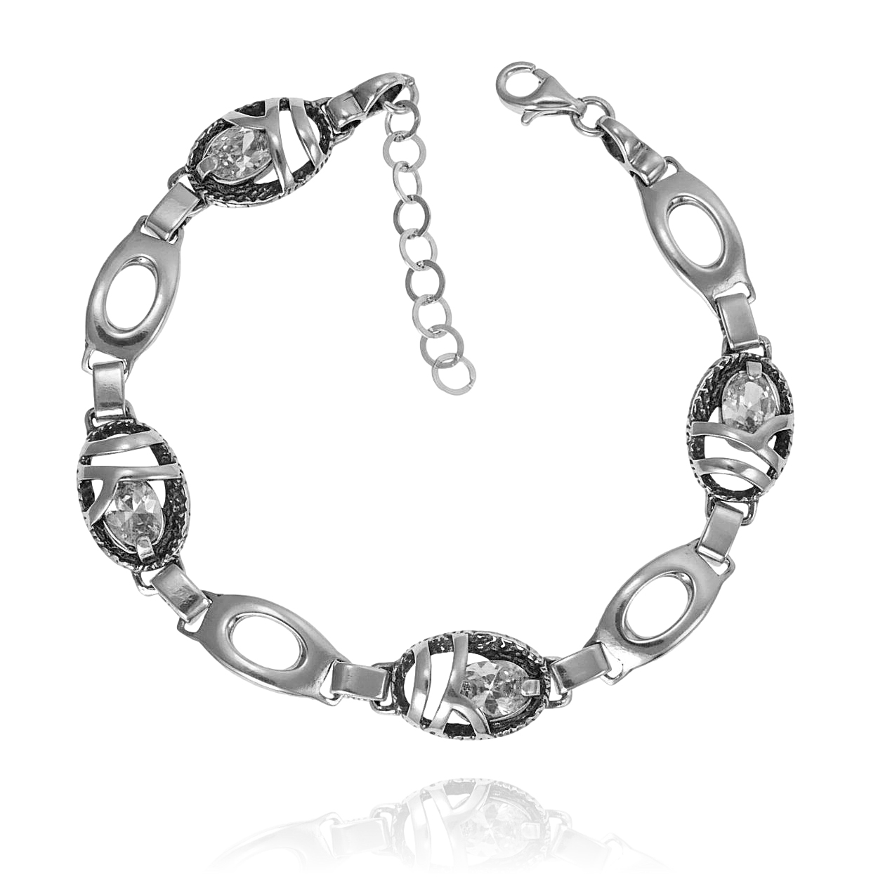 Srebrna Oksydowana Bransoletka z Cyrkoniami !