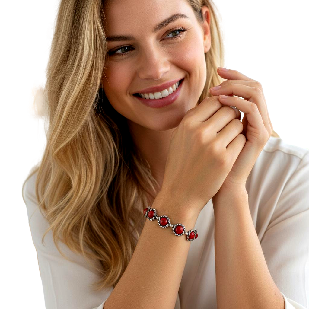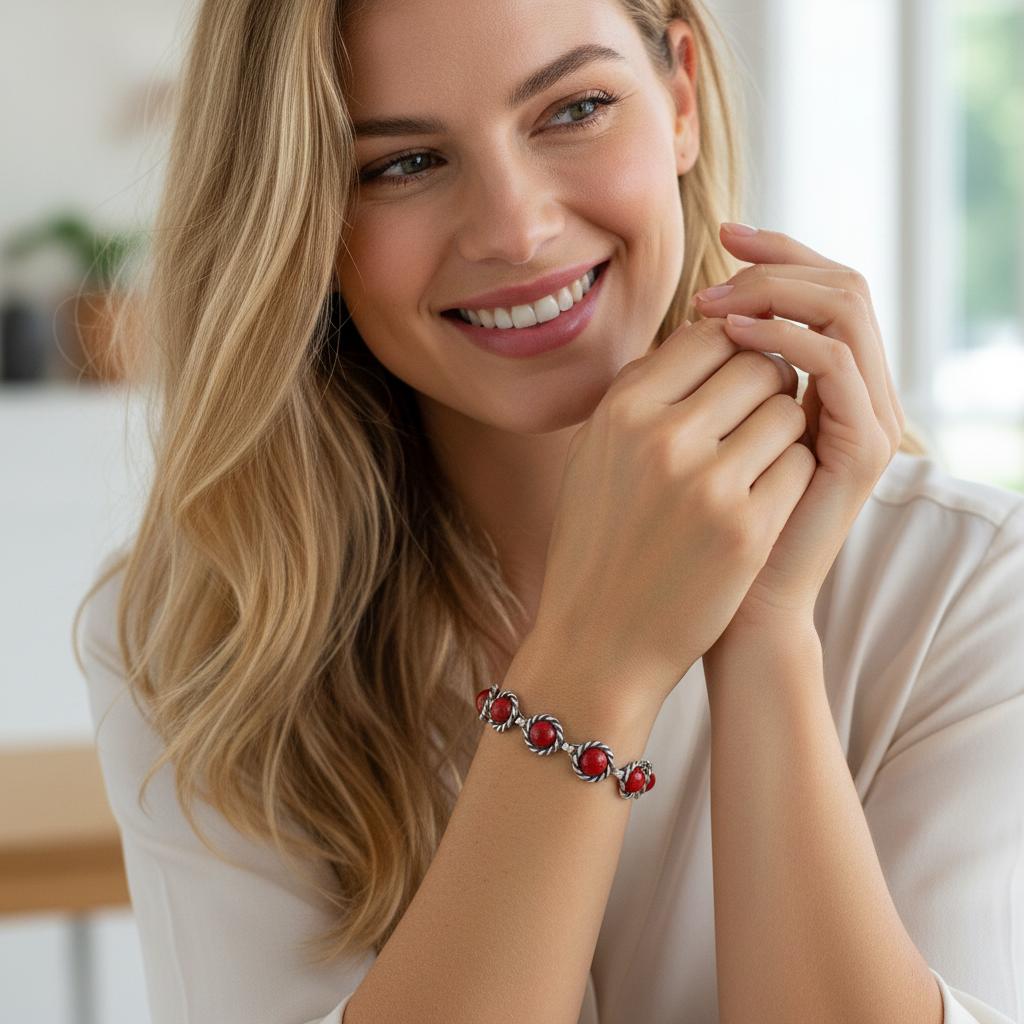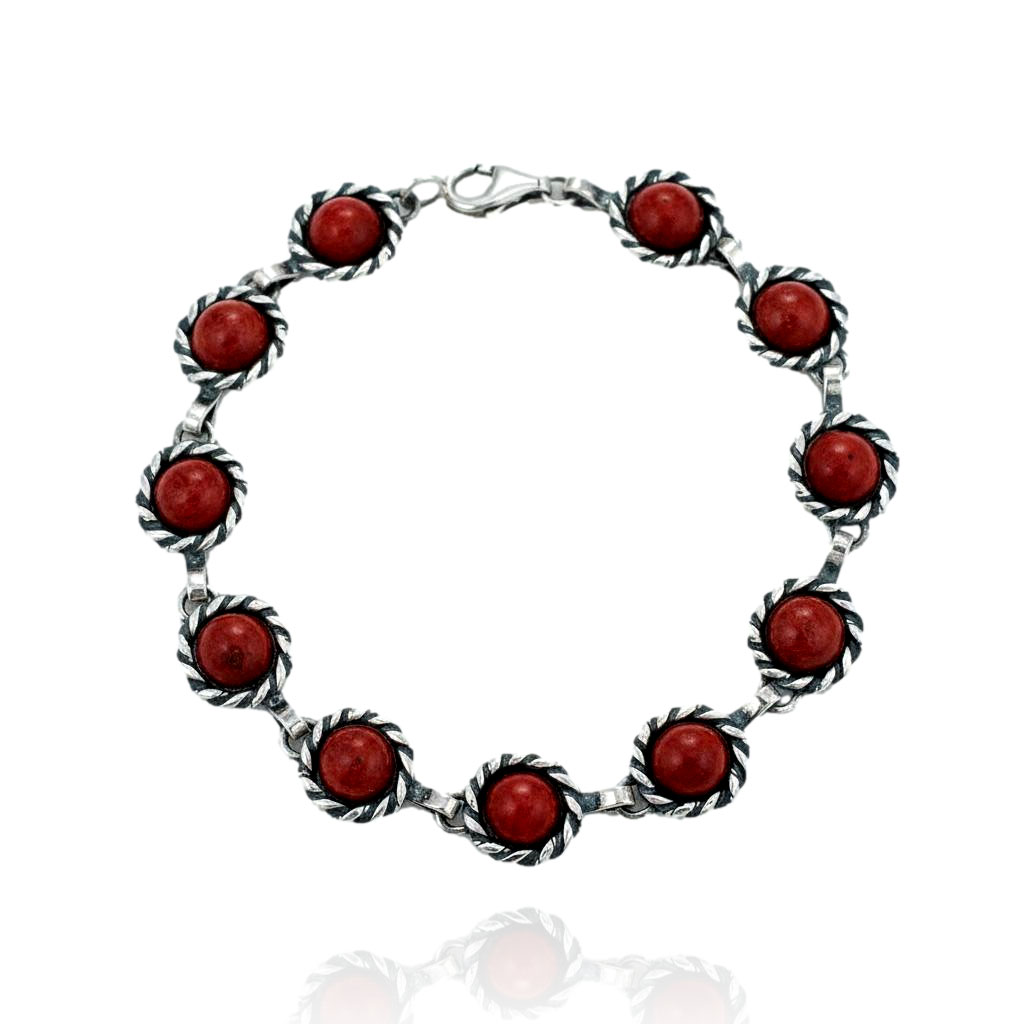 Srebrna Oksydowana Bransoletka z Koralem Koralami