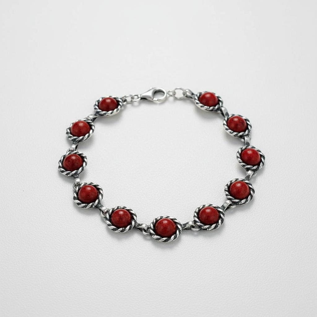 Srebrna Oksydowana Bransoletka z Prawdziwym Koralem Koralami !