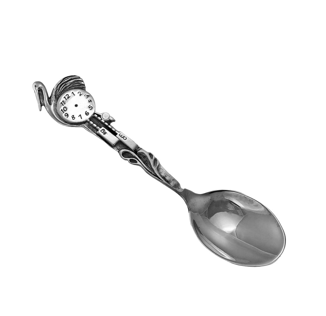 Srebrna Oksydowana Łyżeczka z Bocianem na Chrzest lub Urodziny