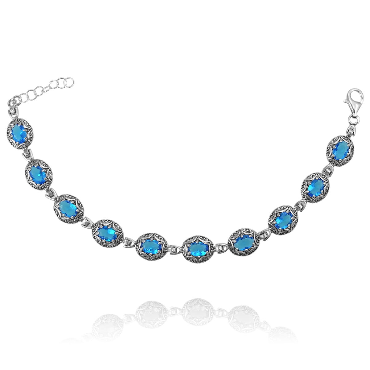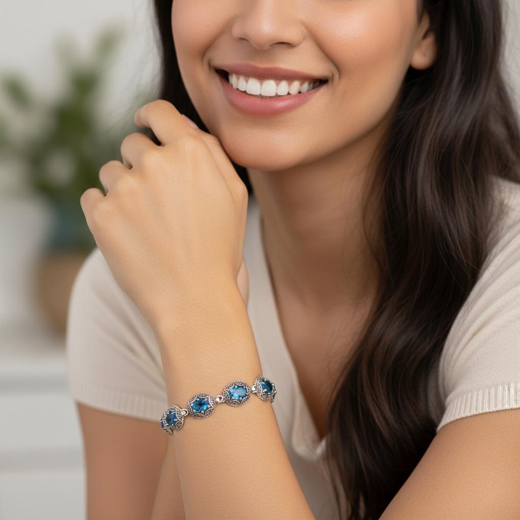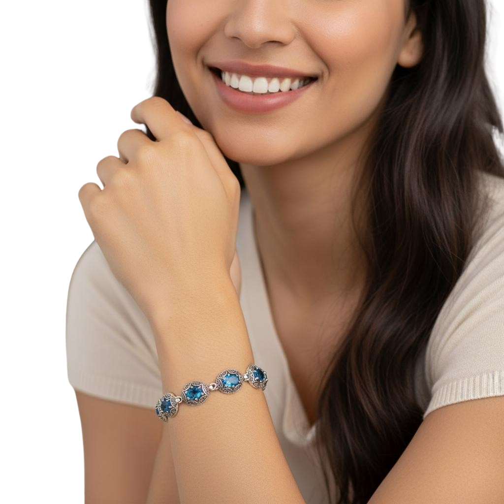 Srebrna Rodowana Bransoletka z Błękitnymi Cyrkoniami !