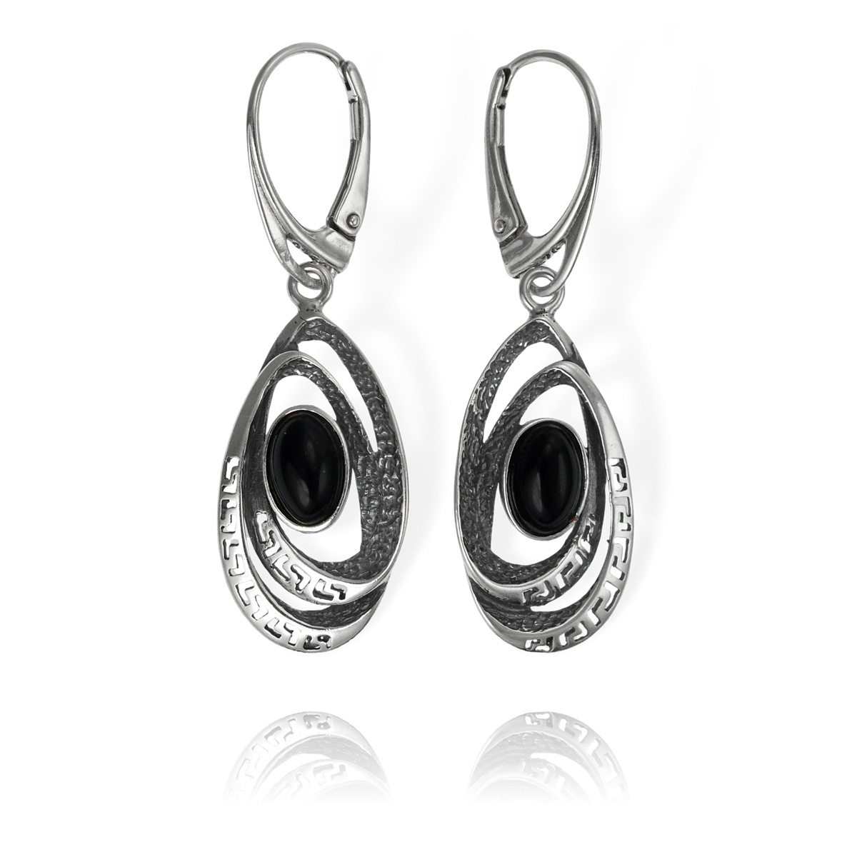 Srebrne Ażurowe, Oksydowane Kolczyki z Onyksem!