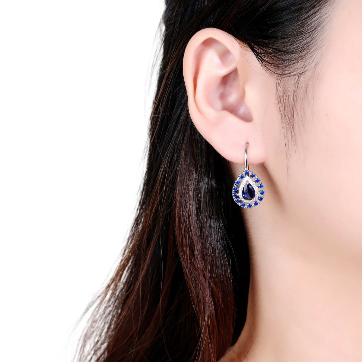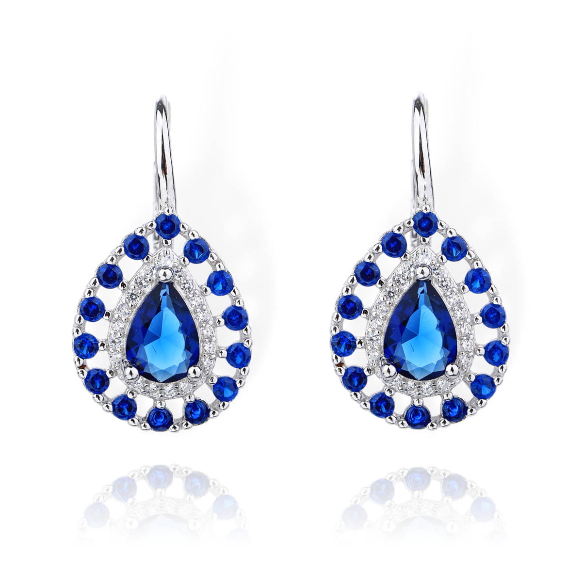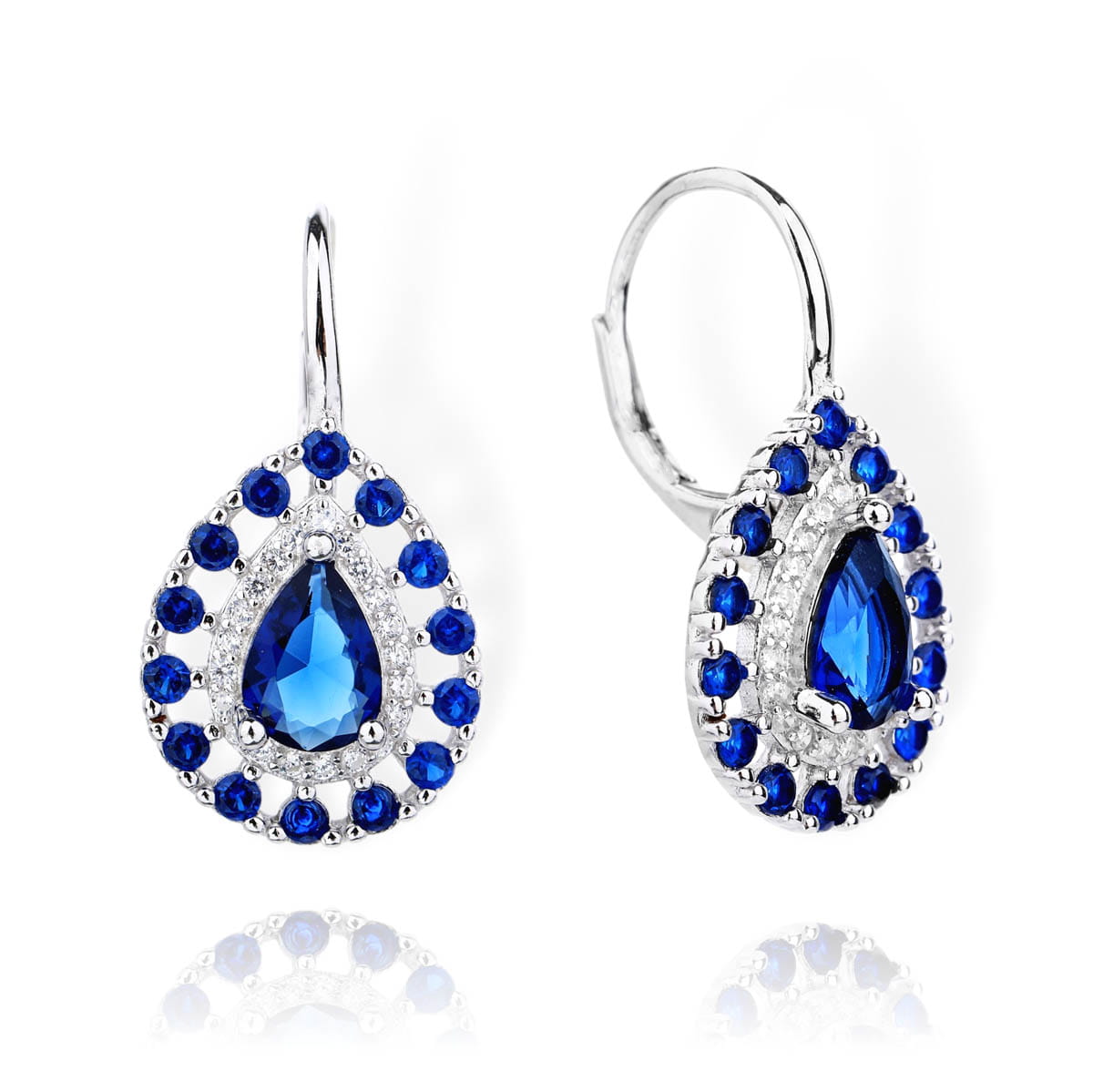 Srebrne Ażurowe Rodowane Kolczyki z Niebieskimi Cyrkoniami !