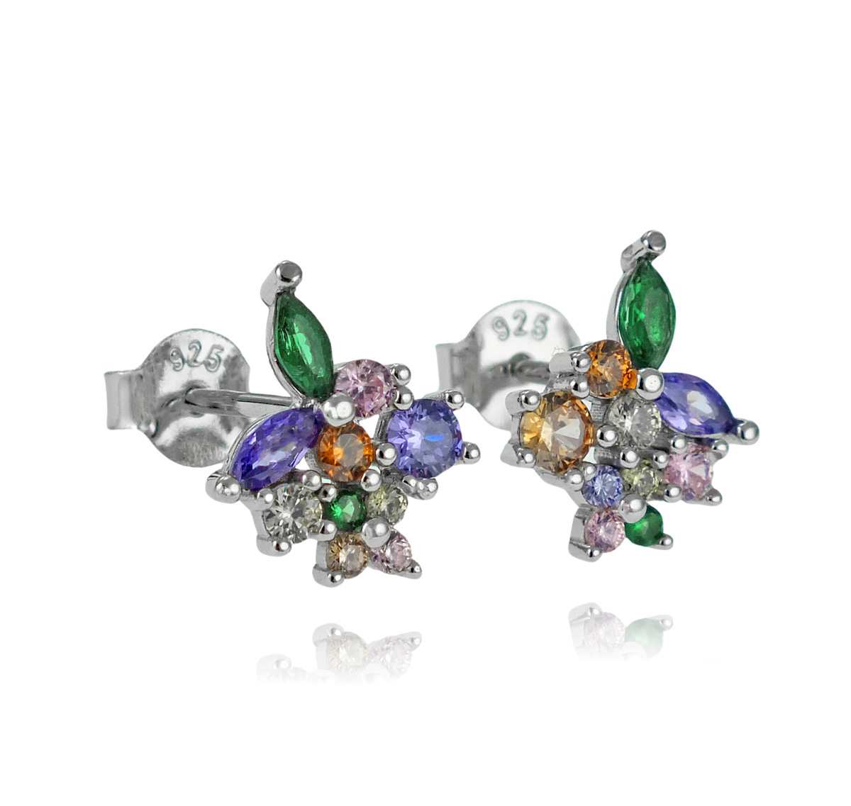 Srebrne Fantazyjne Kolczyki z Kolorowymi Cyrkoniami
