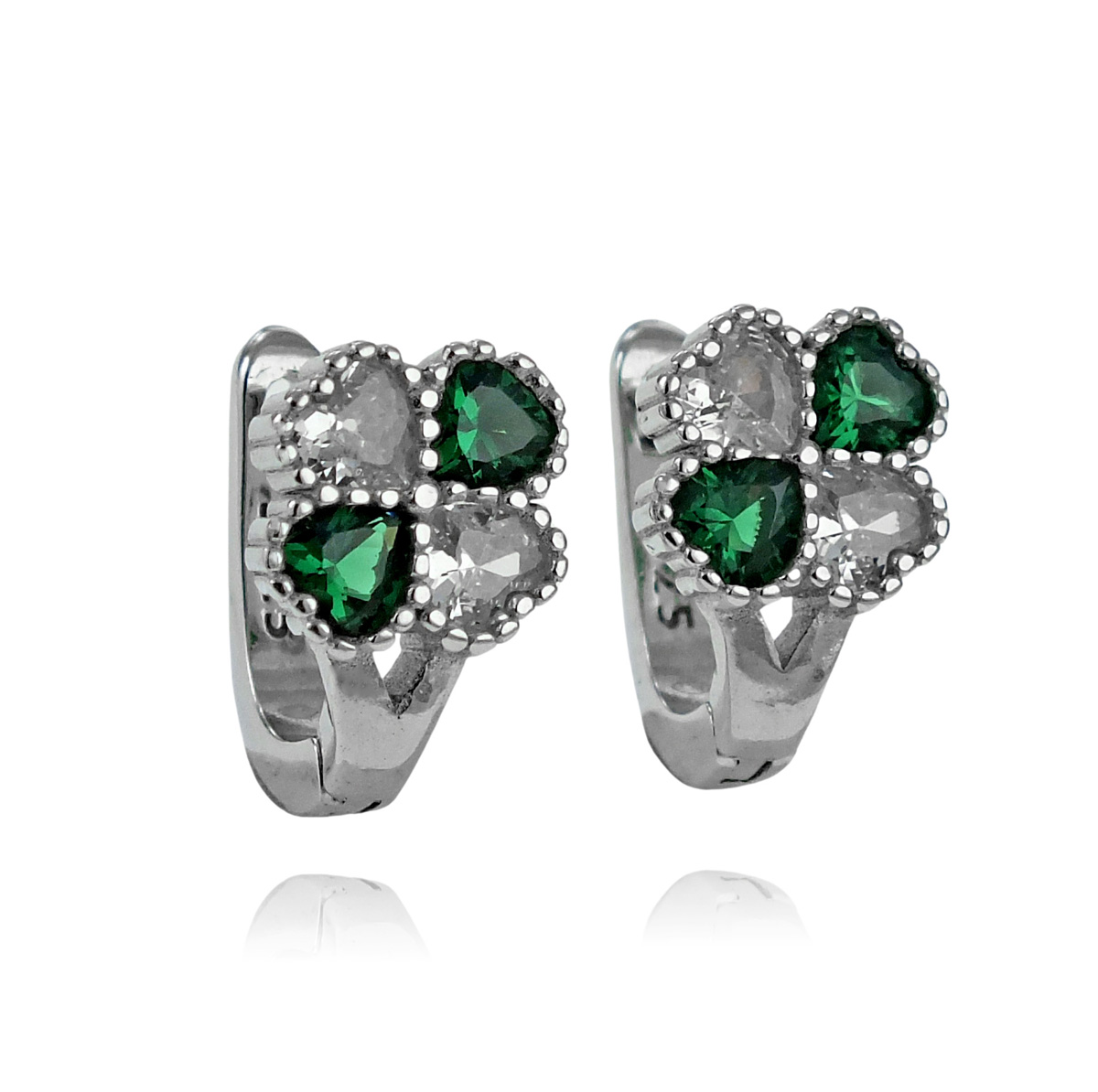 Srebrne Kolczyki Koniczynki na Angliku z Cyrkoniami