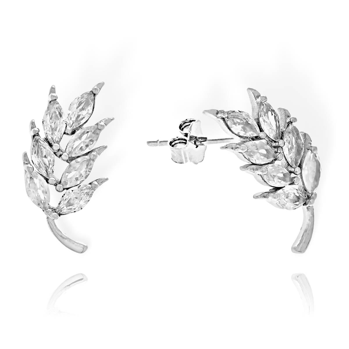 Srebrne Kolczyki Liście, Listki z Cyrkoniami