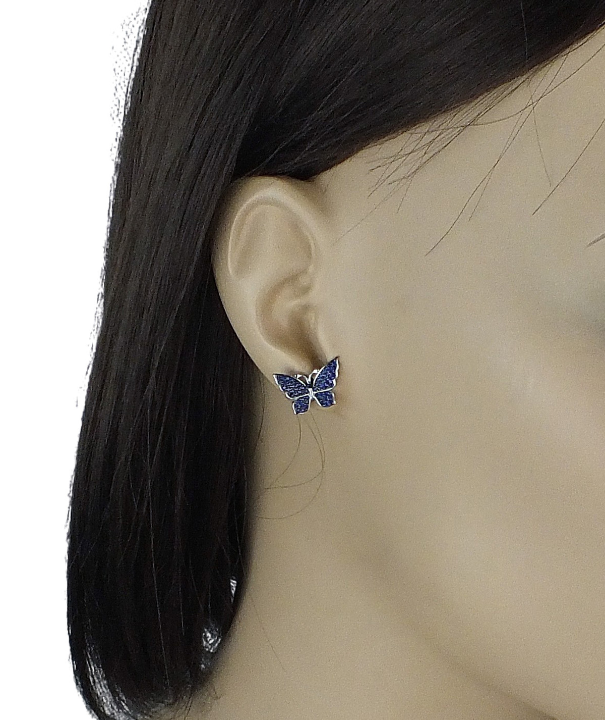 Srebrne Rodowane Kolczyki Motylki z Niebieskimi Cyrkoniami !