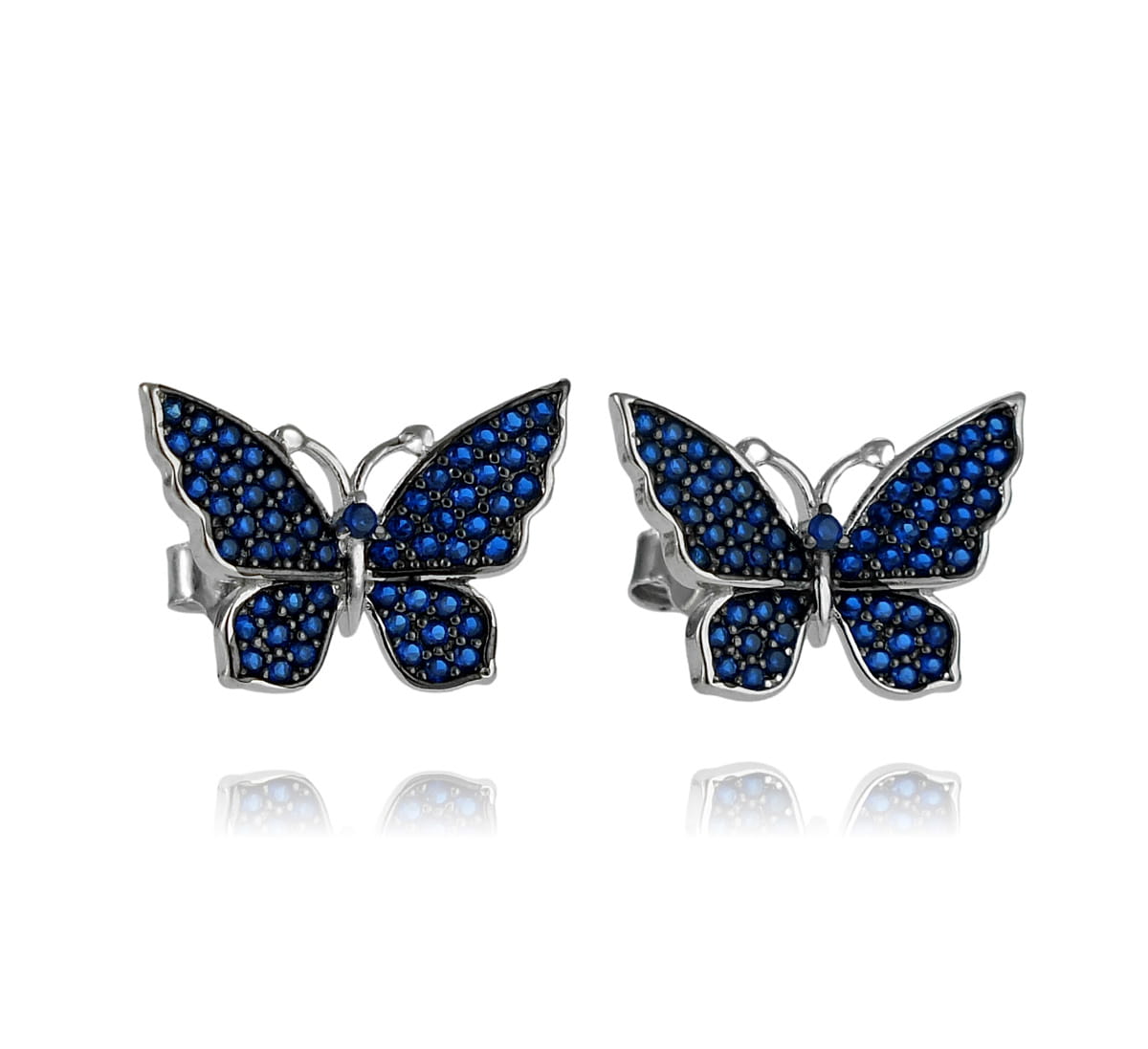 Srebrne Kolczyki Motyle, Motylki z Niebieskimi Cyrkoniami