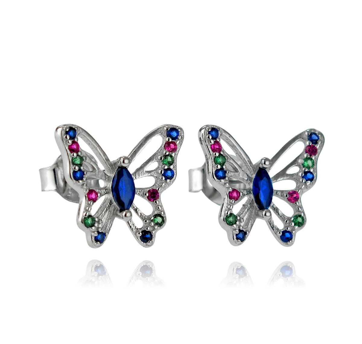 Srebrne Kolczyki Motylki z Kolorowymi Cyrkoniami