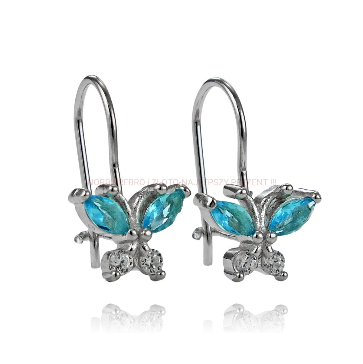 Srebrne Kolczyki Rodowane Motylki Motyle na Biglu z Cyrkoniami