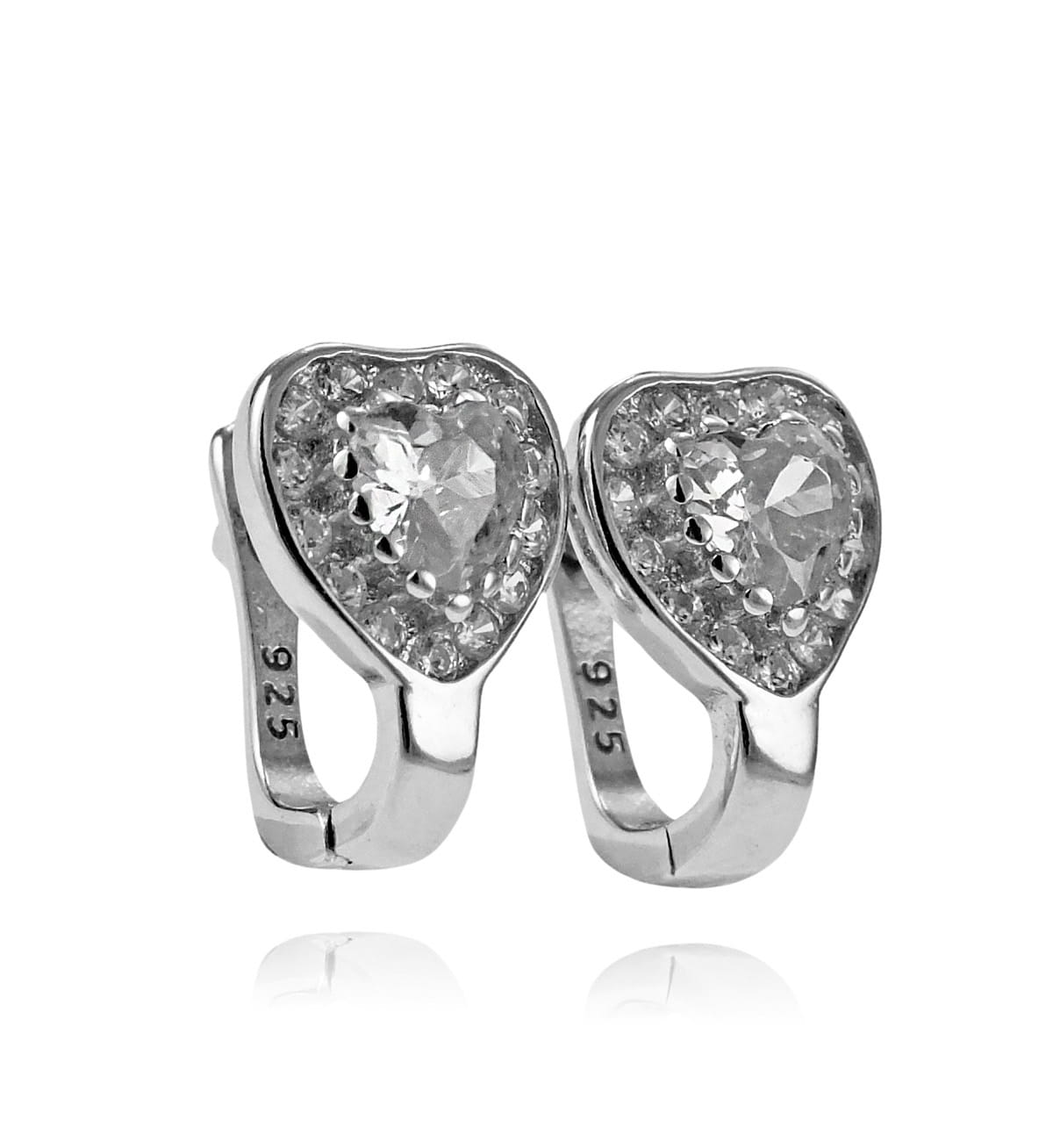 Srebrne Rodowane Kolczyki Serduszka z Cyrkoniami