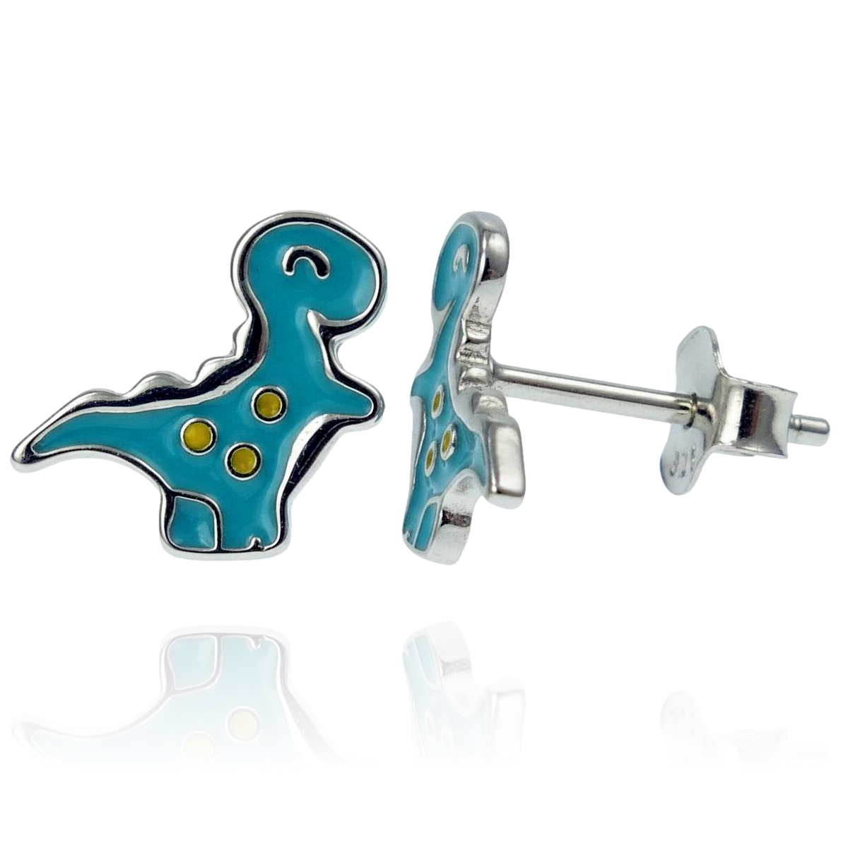 Srebrne Malowane Kolczyki Dinozaury
