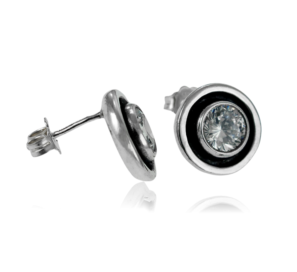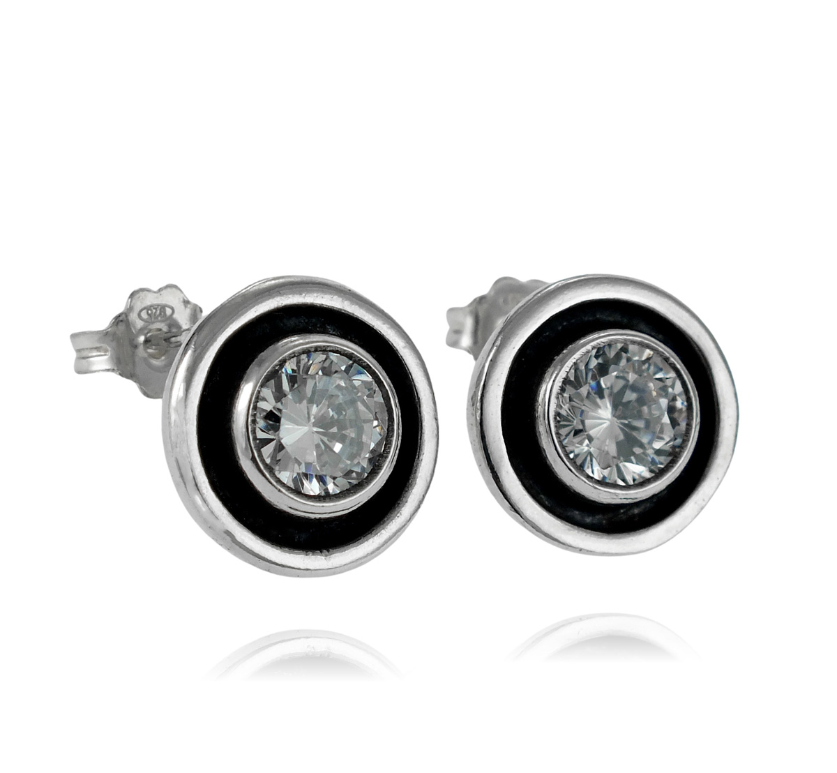 Srebrne Oksydowane Kolczyki Kółeczka z Cyrkoniami !