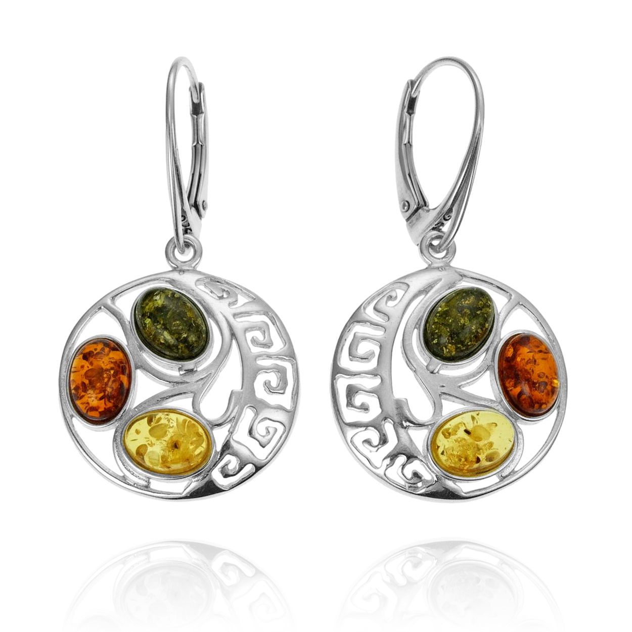 Srebrne Piękne Ażurowe Kolczyki z Bursztynami !