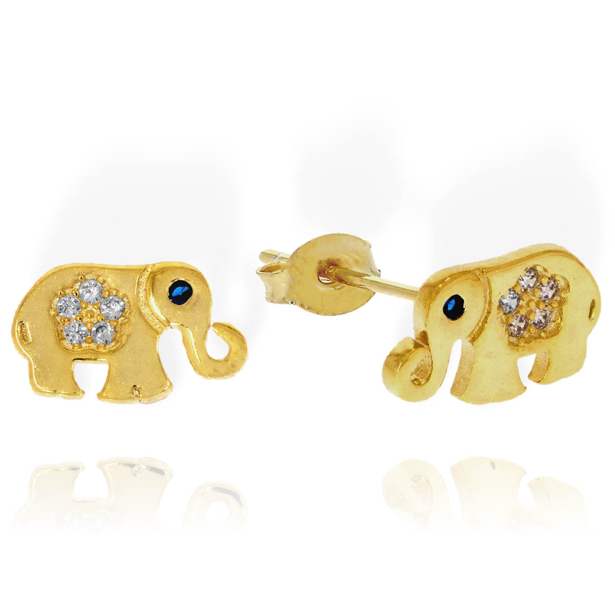 Srebrne Pozłacane Kolczyki Słonie, Słoniki z Cyrkoniami !