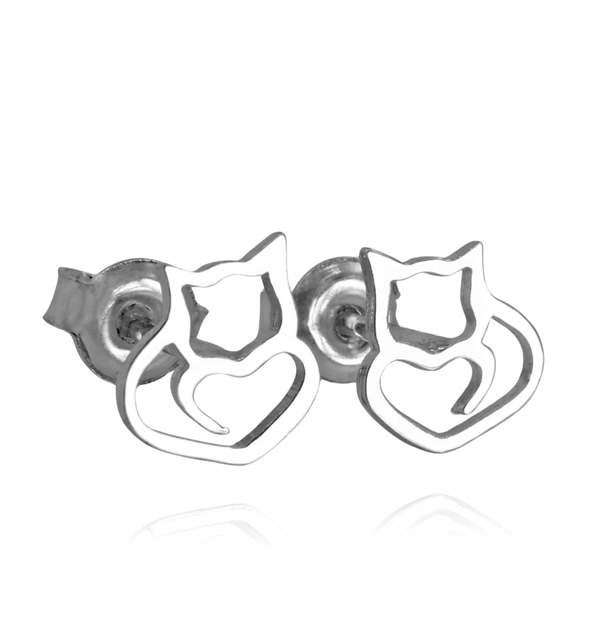 Srebrne Rodowane Kolczyki Ażurowe Gładkie Kotki